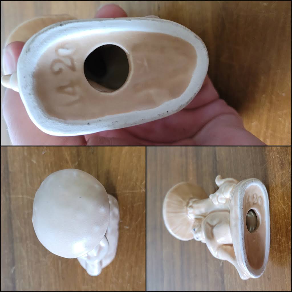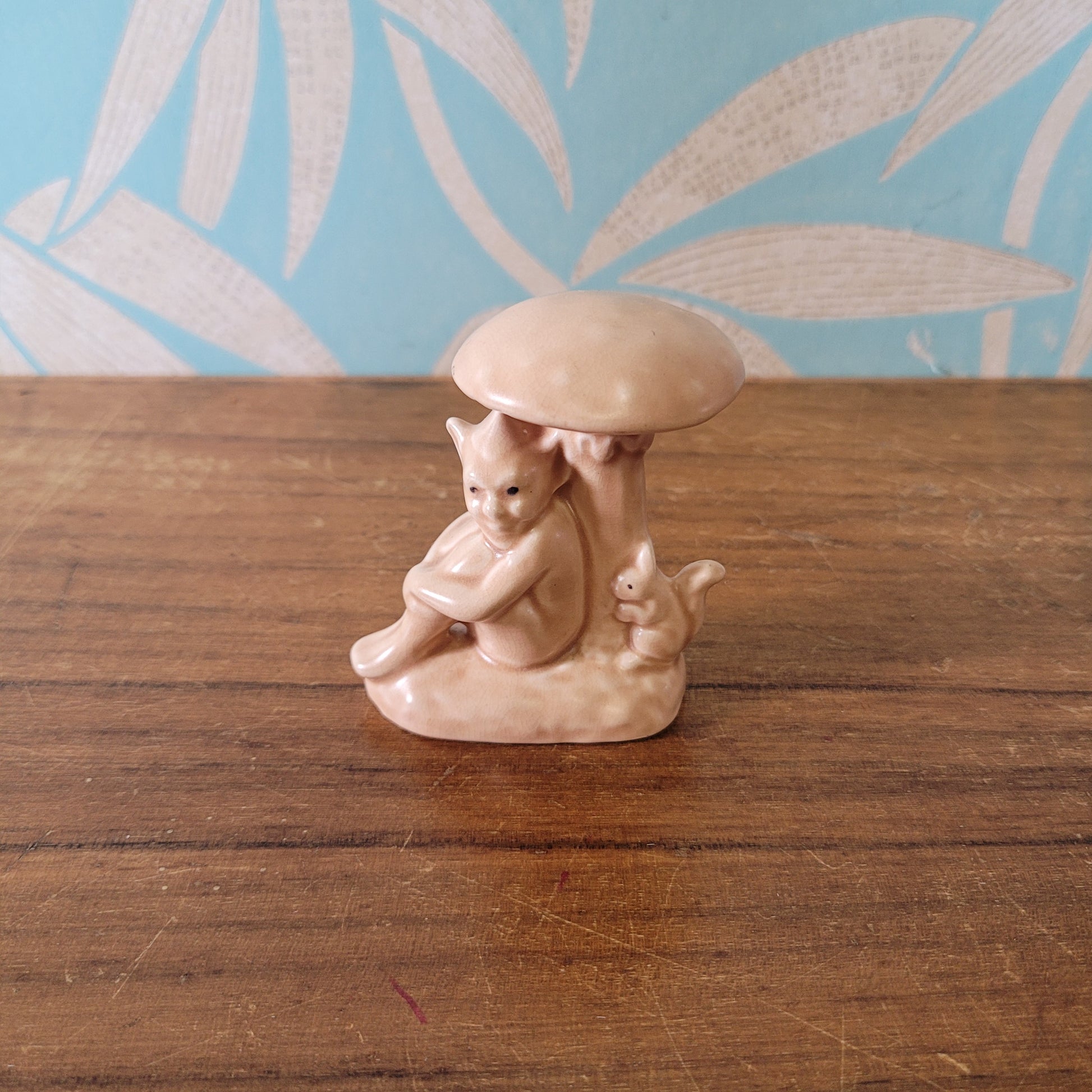 1930s Sylvac Lucky Pixie with toadstool and squirrel ornament in matt beige