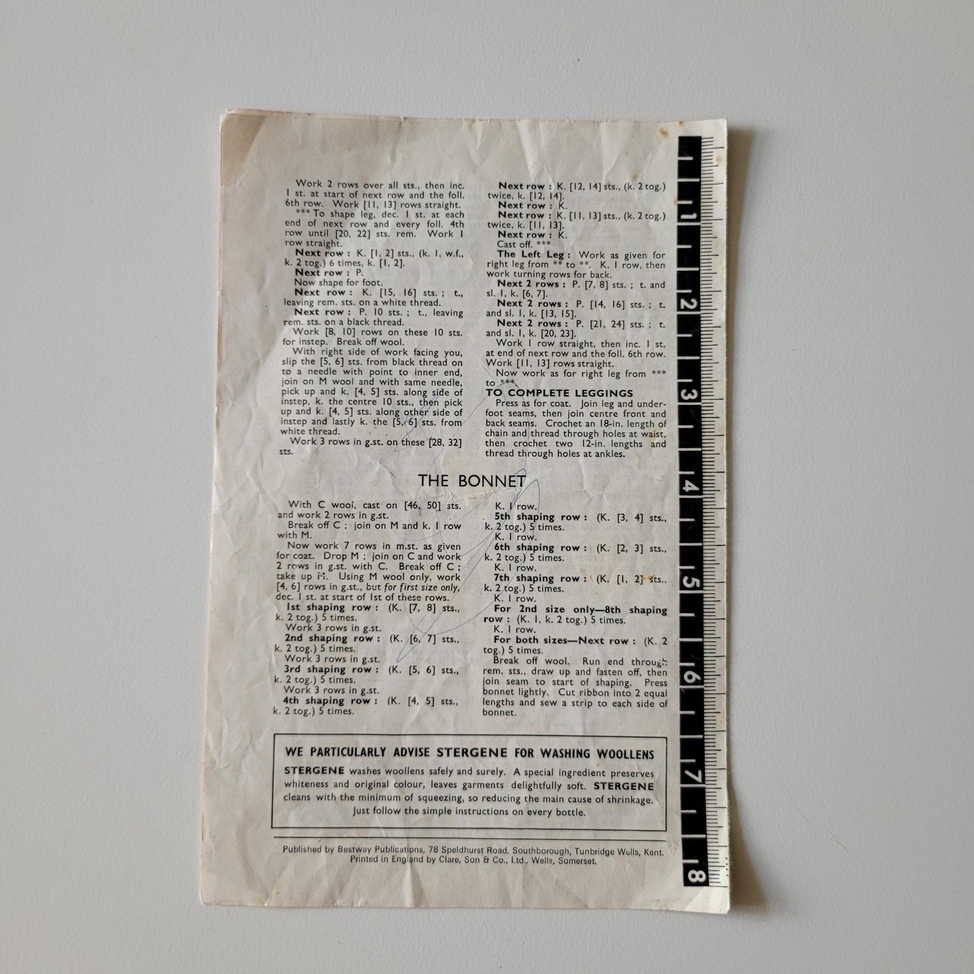 1940s/50s Bestway 3797 knitting pattern for doll's coat, leggings & bonnet