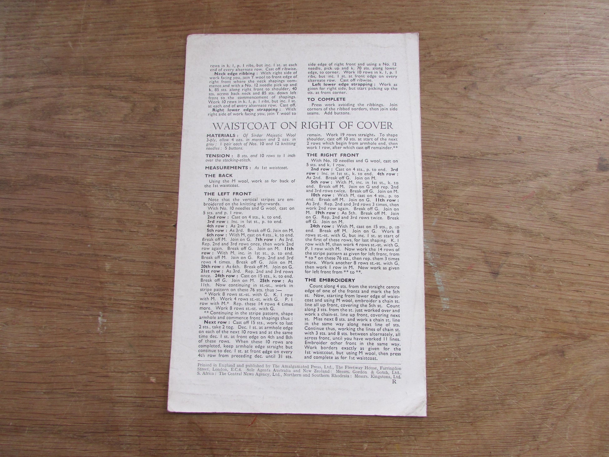 1940s/50s Bestway B2454 knittting pattern for men's waistcoats