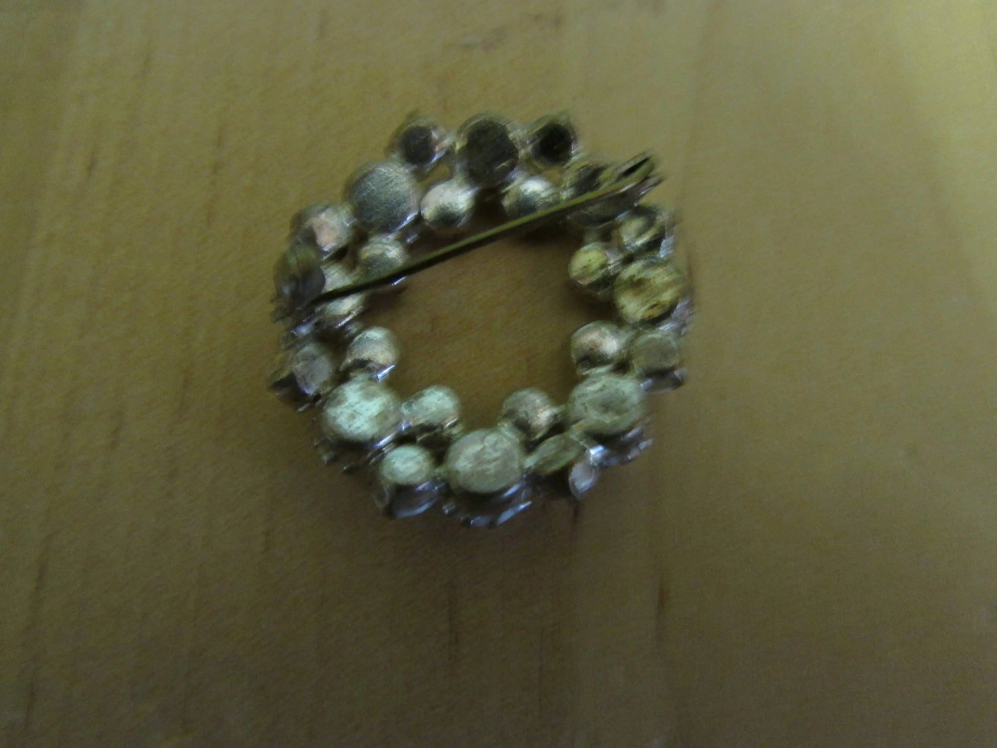 1940s/50s silver-tone & milk glass wreath circle brooch