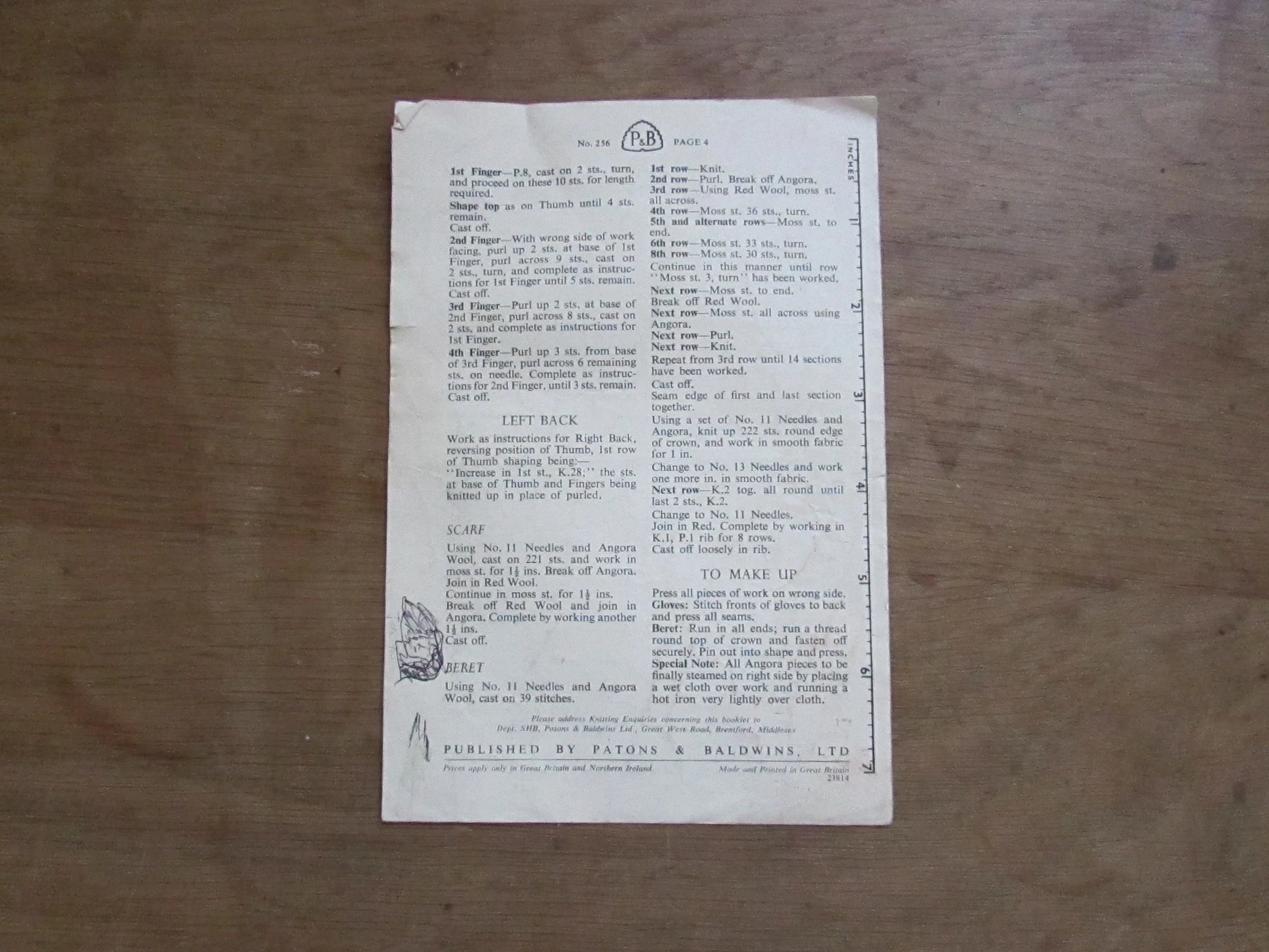 1940s Patons 256 knitting pattern for Fuzzy-Wuzzy gloves, scarf & beret
