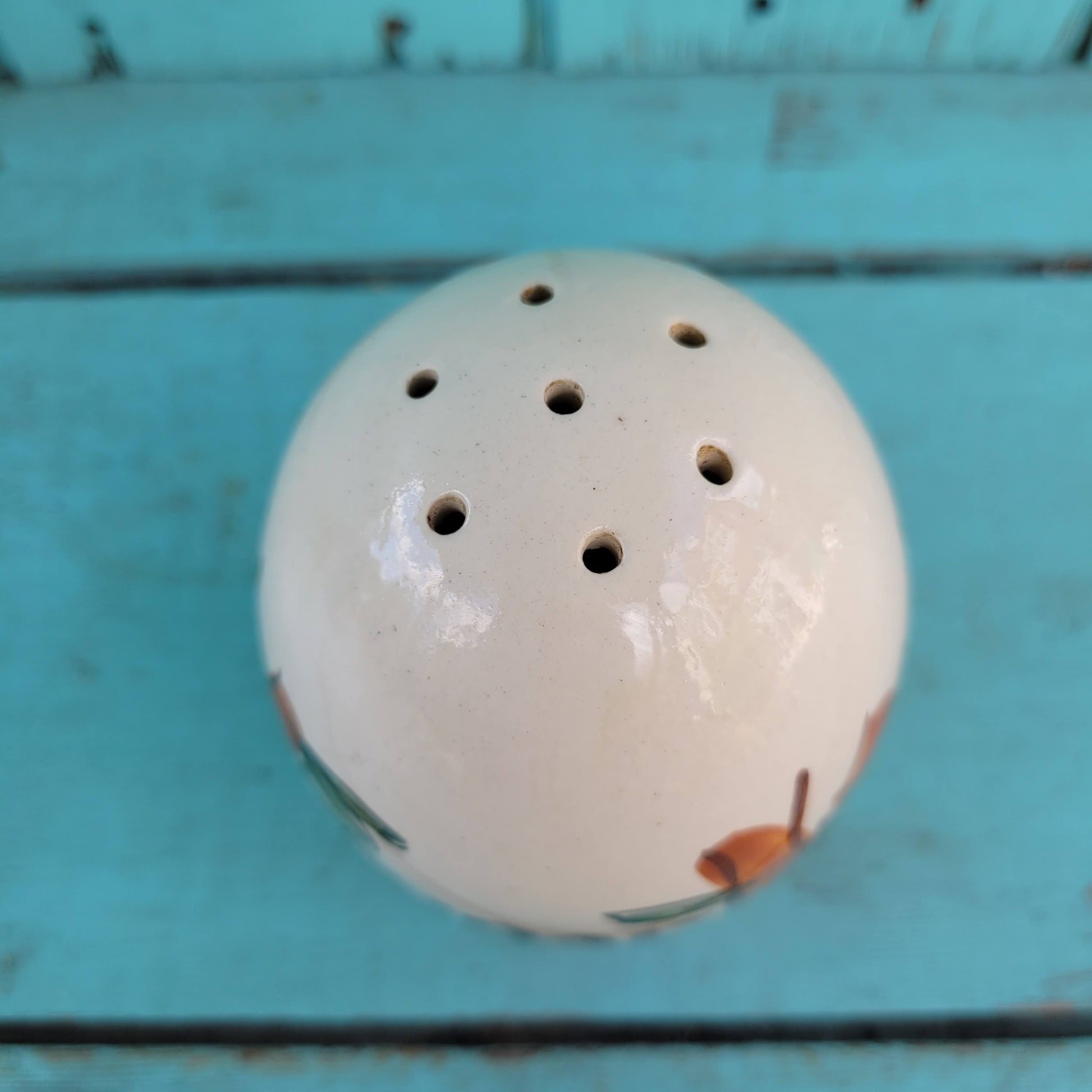 This 1950s Geoffrey Maund ceramic sugar shaker features a distinctive bamboo pattern, exemplifying mid-century design elegance. Standing at 11.5 cm tall, it combines practical use with collectible appeal, making it a refined addition to any vintage tableware collection. Crafted with attention to detail, it reflects the period’s craftsmanship and aesthetic sensibility.