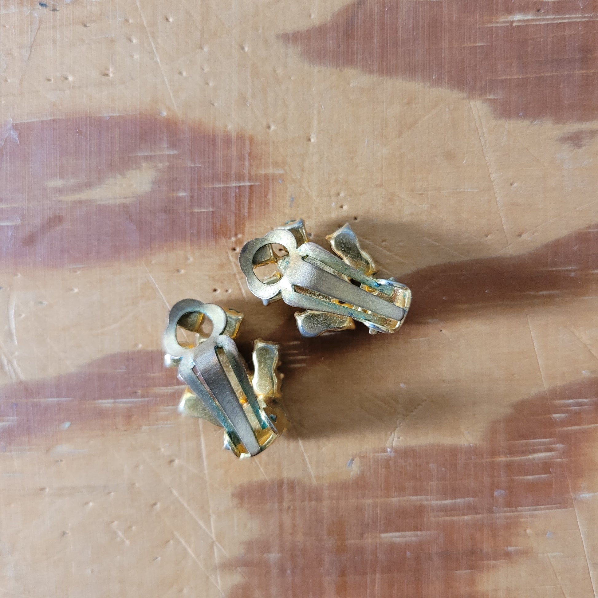 1950s gold-tone green rhinestone clip-on earrings