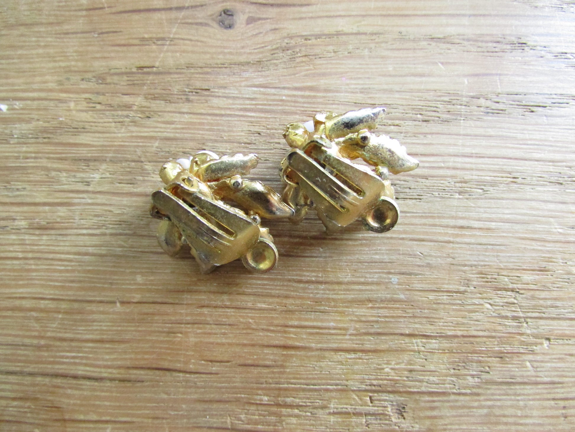 1950s gold-tone & plastic lilac leaf and flower clip-on earrings