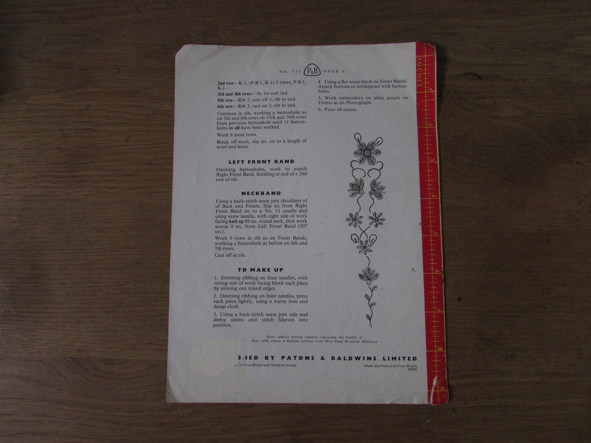 1950s P&B Wools 735-6 knitting pattern for embroidered jumper cardigan