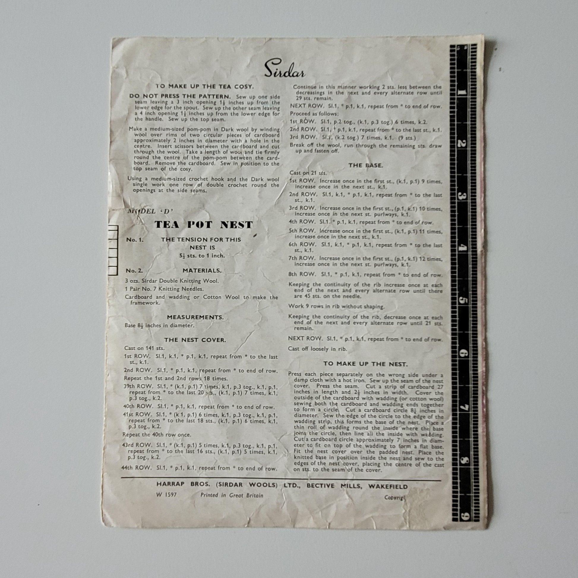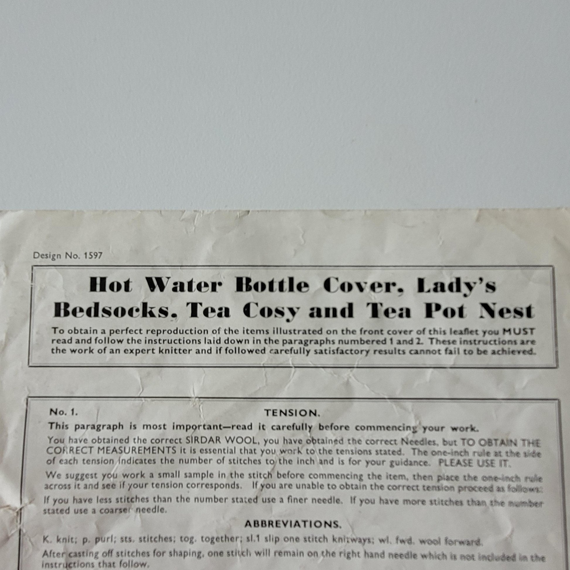 1950s Sirdar 1597 knitting pattern for hot water bottle cover, bedsocks, tea cosy & teapot nest