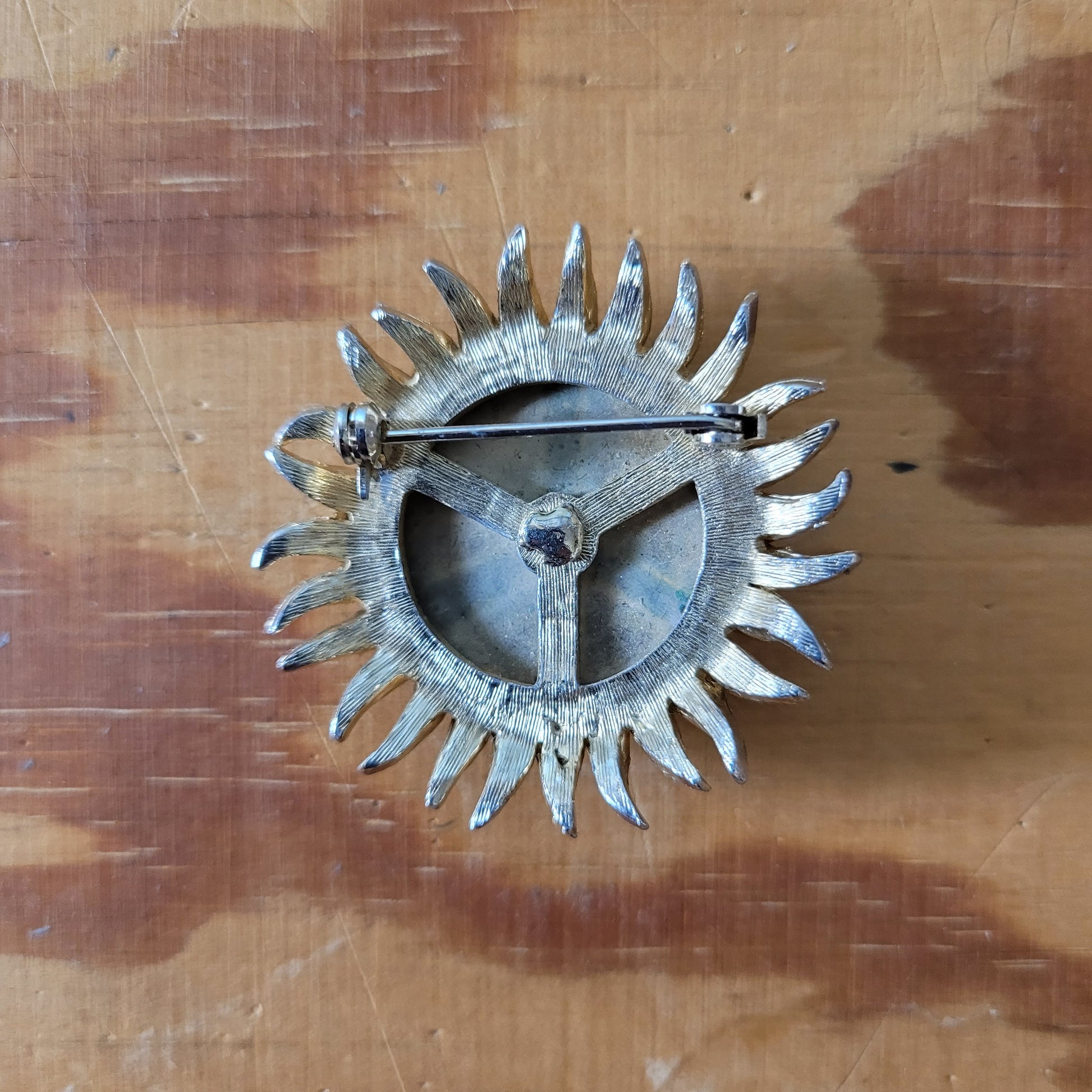 1950s Victorian-style gold-tone & blue enamel three dimensional flower brooch with faux-pearl trim detail