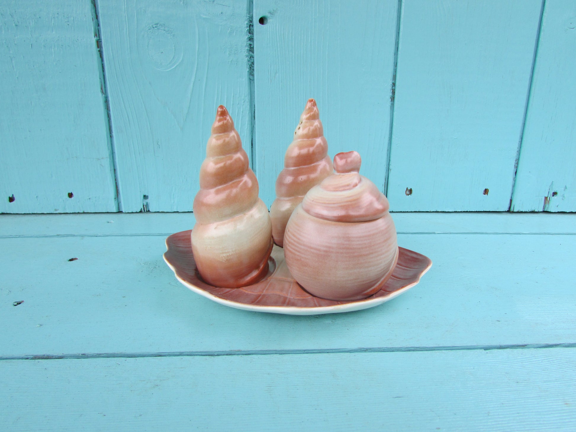 1960s Carlton Ware handpainted Australian Design ceramic shell cruet set