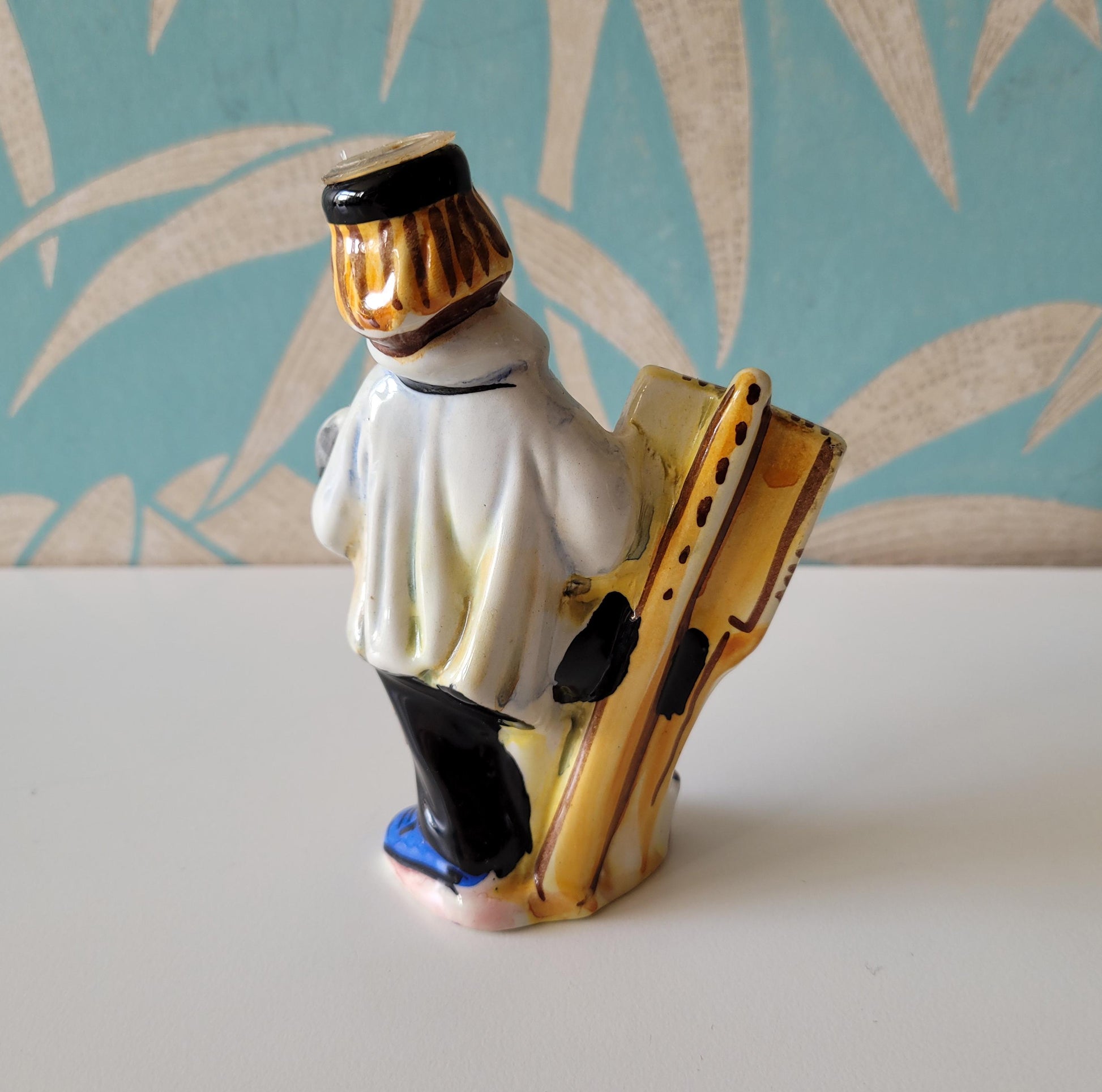 This kitsch 1960s Drioli miniature liquor bottle stands just 12.5cm tall and doubles as a delightful decorative piece. Featuring an artist with his risqué "painting", it's the sort of quirky collectible that sparks conversation. Perfect for vintage enthusiasts, spirit collectors, or anyone who appreciates a bit of nostalgic humour with their décor.
