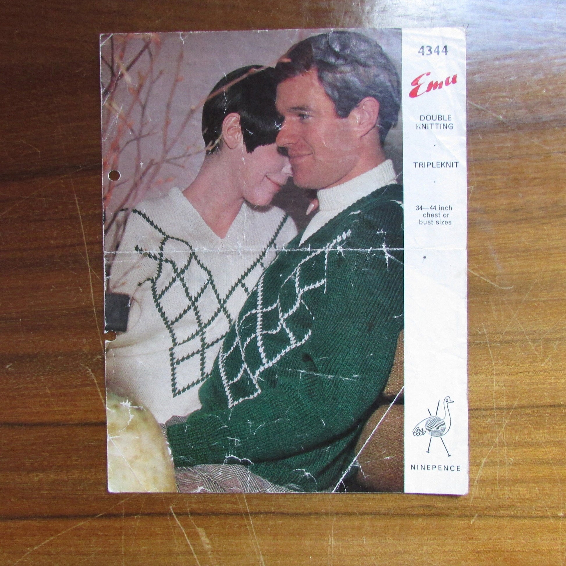 1960s Emu 344 knitting pattern for his & her's sweaters