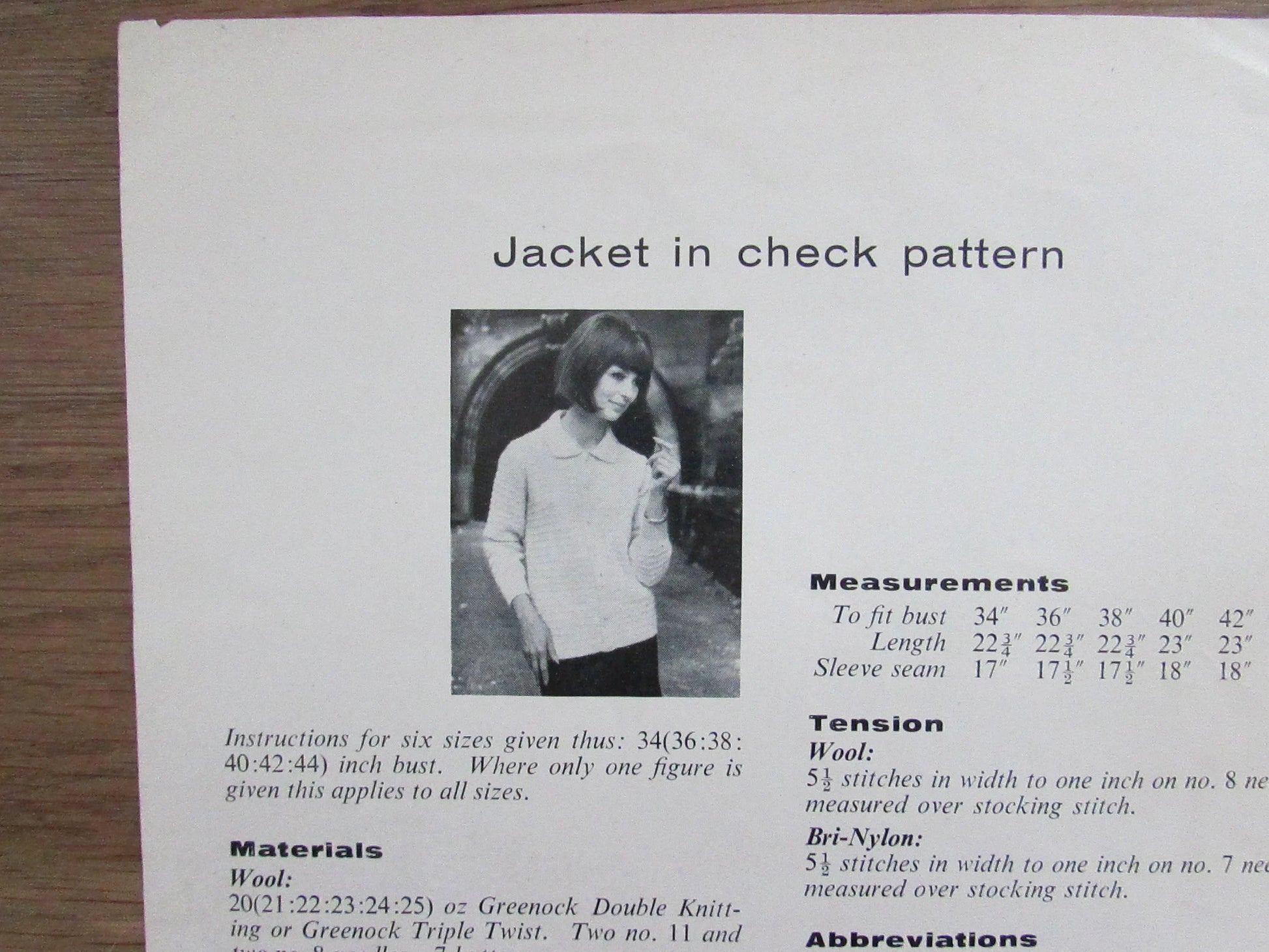 1960s Greenock 98 knitting pattern for jacket in check pattern
