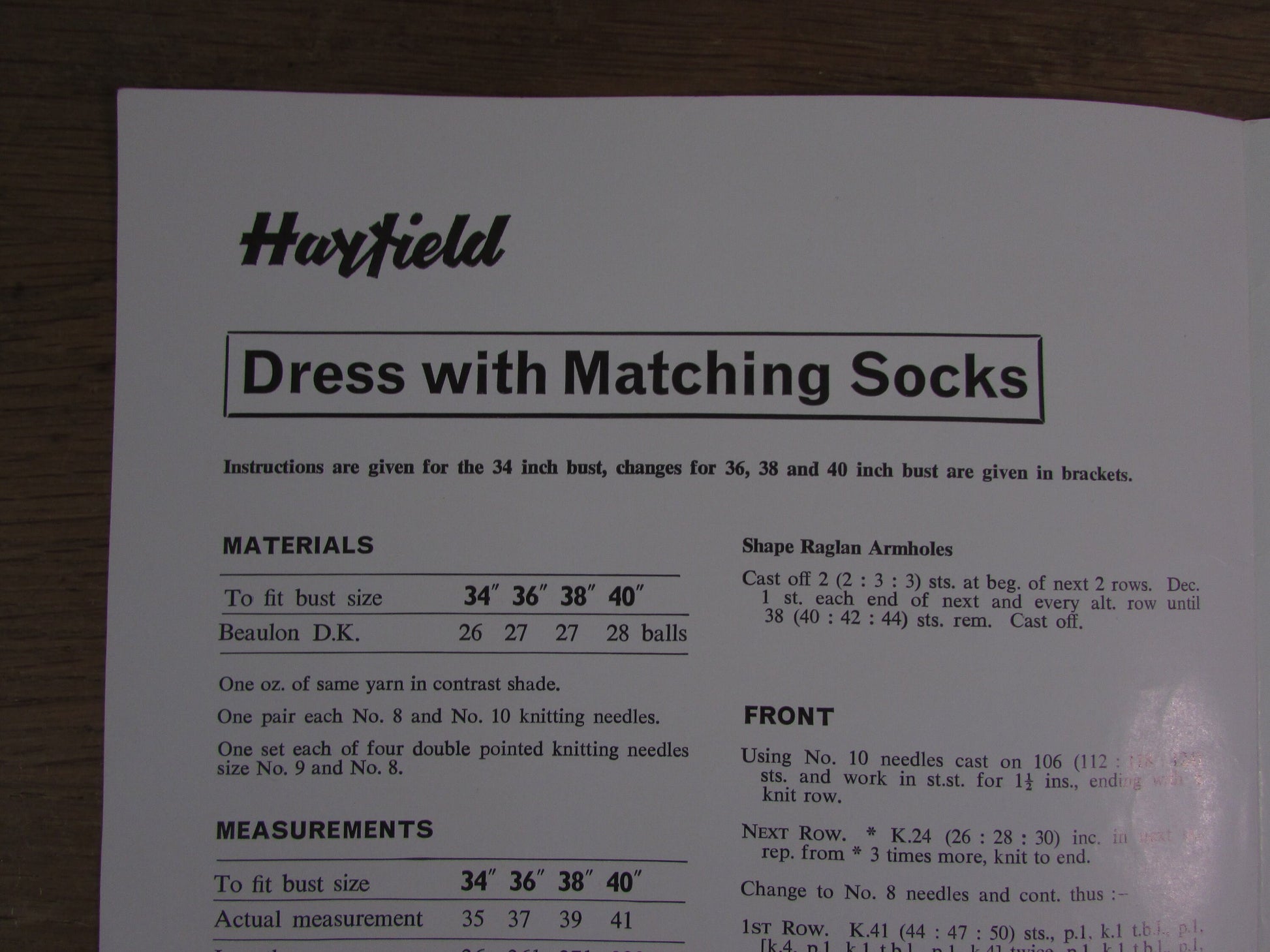 1960s Hayfield 529 knitting pattern for dress with matching socks