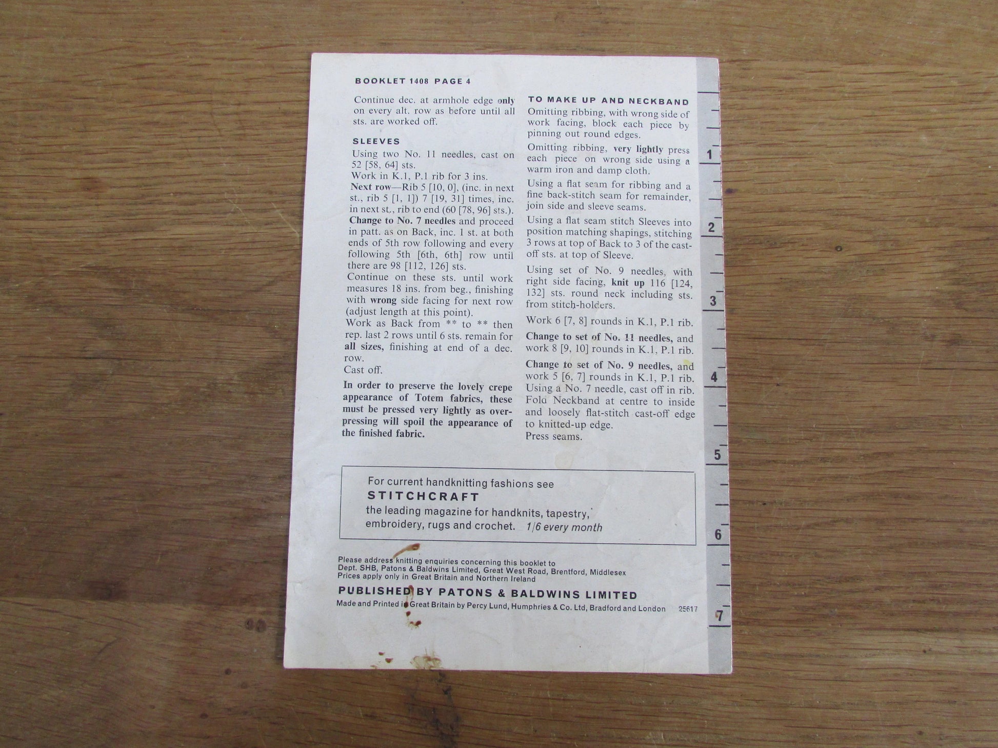 1960s Patons No.1408 knitting pattern for raglan sweater