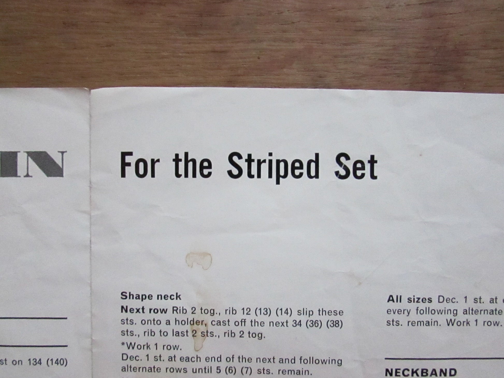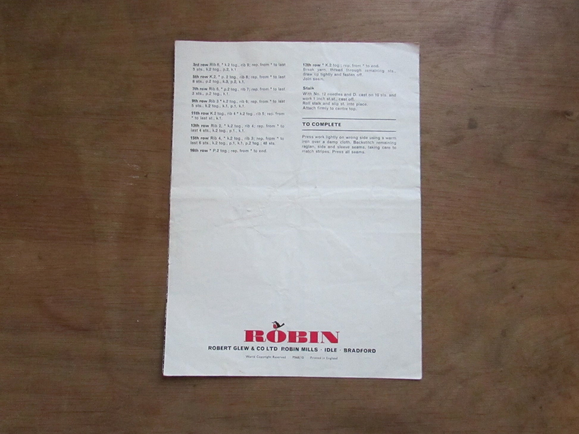 1960s Robin 1805 knitting pattern for striped sweater & cap