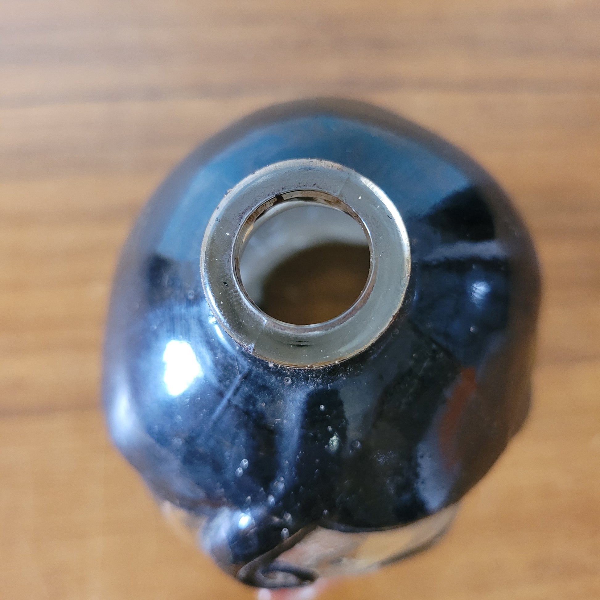 This genuine 1960s Spanish Senorita head-shaped liquor bottle highlights exquisite mid-century craftsmanship with its captivating sculptural form. Standing 20.5cm tall, it makes a striking decanter or an eye-catching collectible. Although the original cork stopper has slipped inside the bottle, it still represents a rare vintage treasure for collectors and lovers of distinctive glassware.