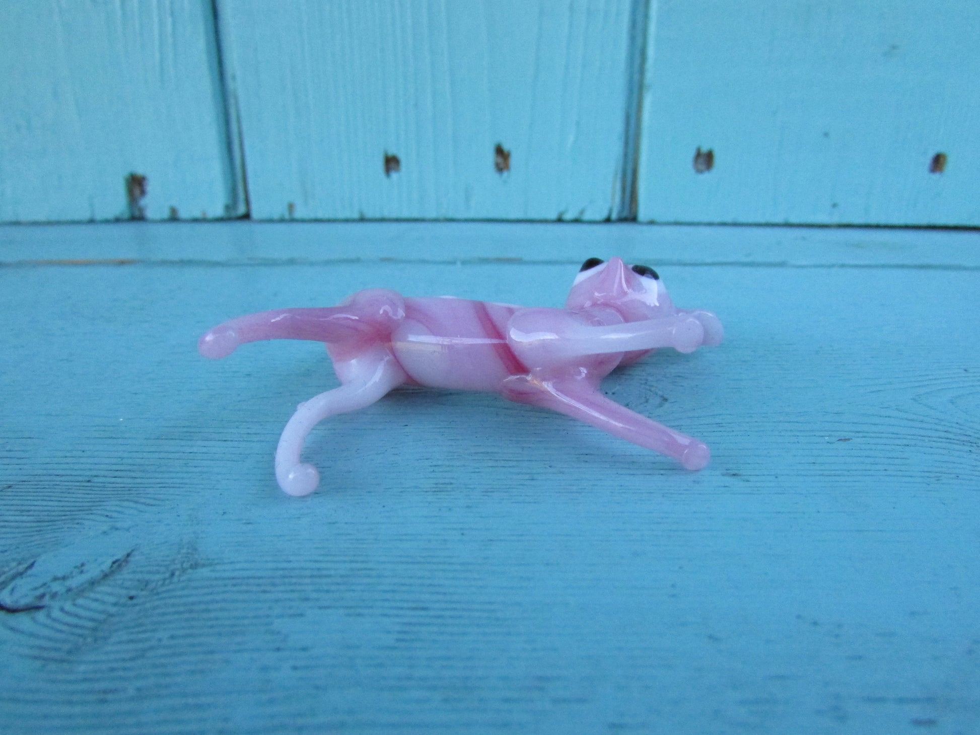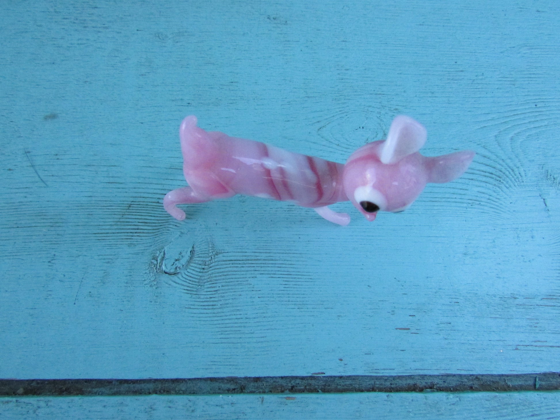 1960s streaked pink blown art glass fawn