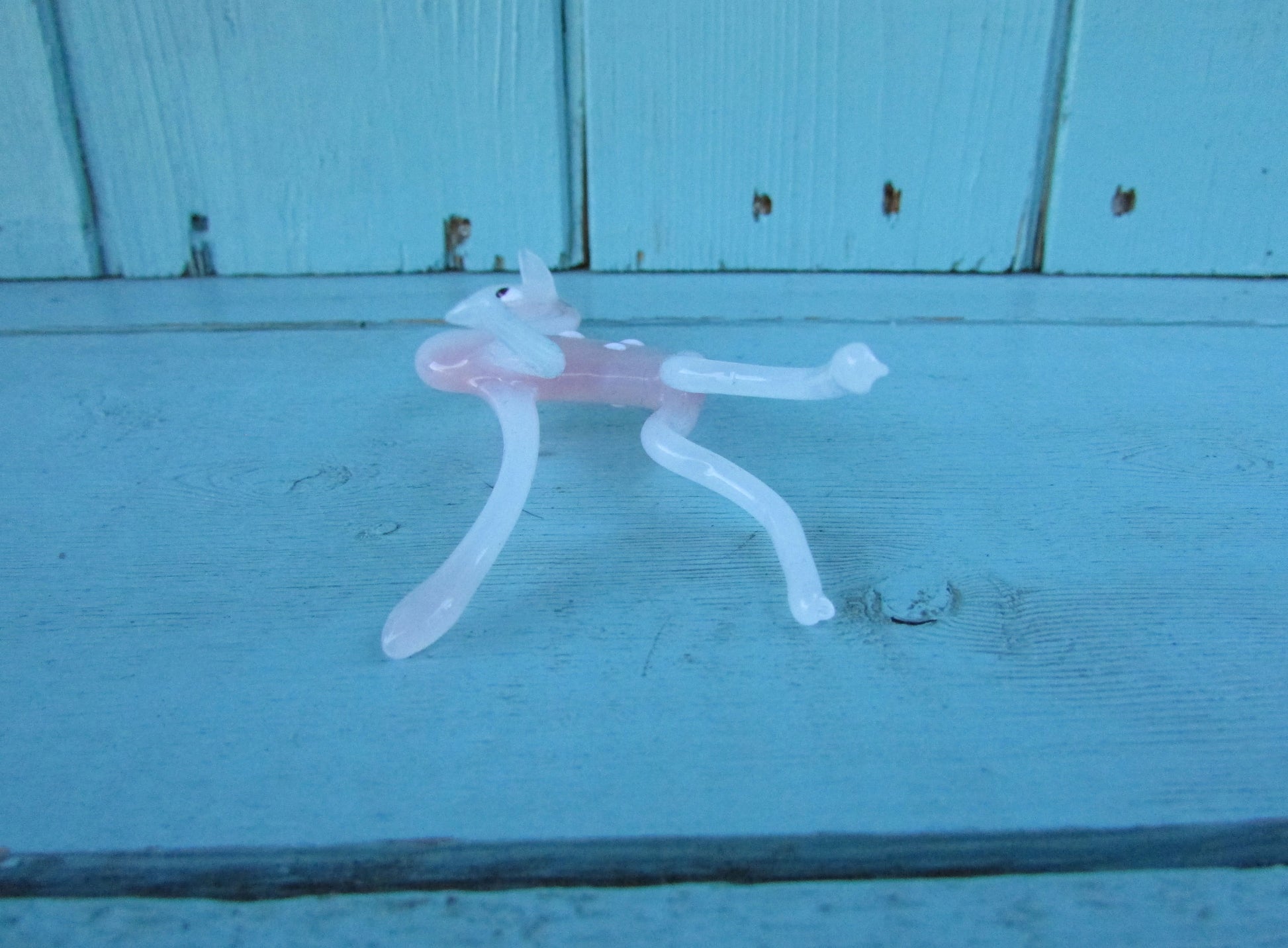 This delicate 1960s Murano-style pink deer figurine features a striking blue scut, expertly crafted in blown art glass. Its miniature size makes it a charming addition to any collection, offering timeless elegance and a splash of vibrant colour to your display. Perfect for lovers of vintage glass art, this piece brings both beauty and character to your home or office.