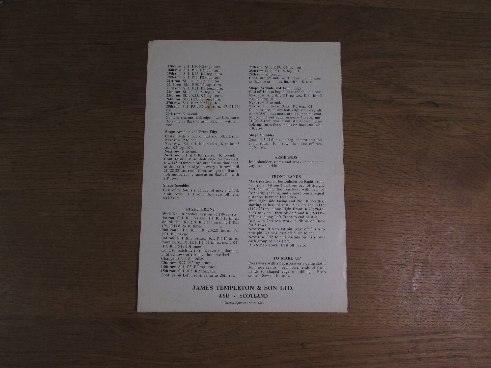 1960s Templeton's 1289 knitting pattern for jerkin & waistcoat