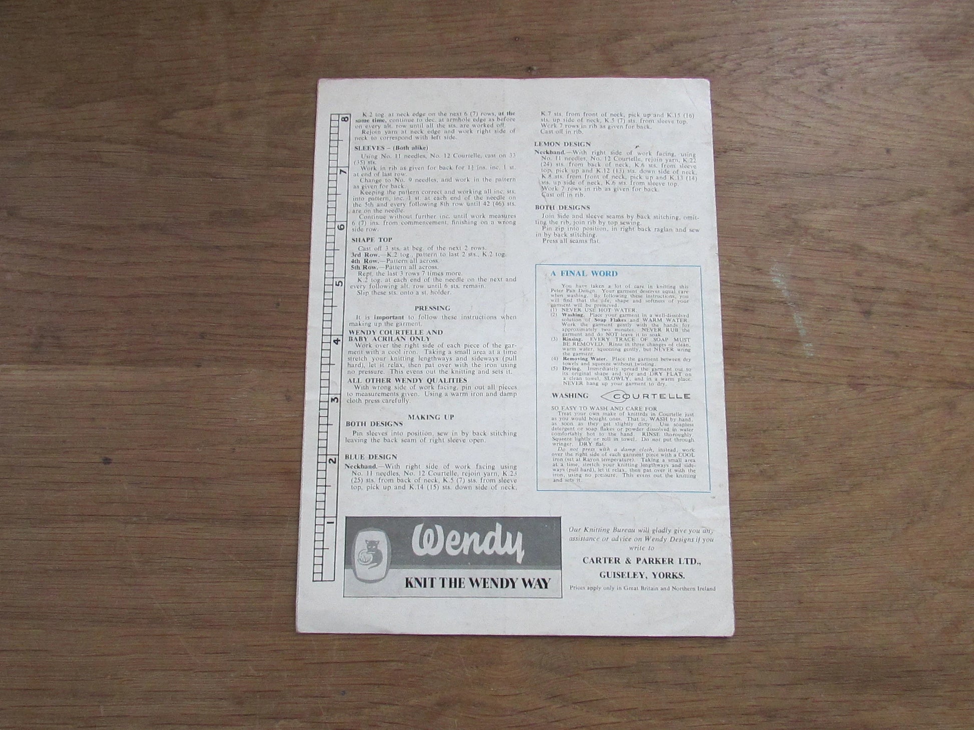 1960s Wendy Design Peter Pan P47 knitting pattern for child's sweaters