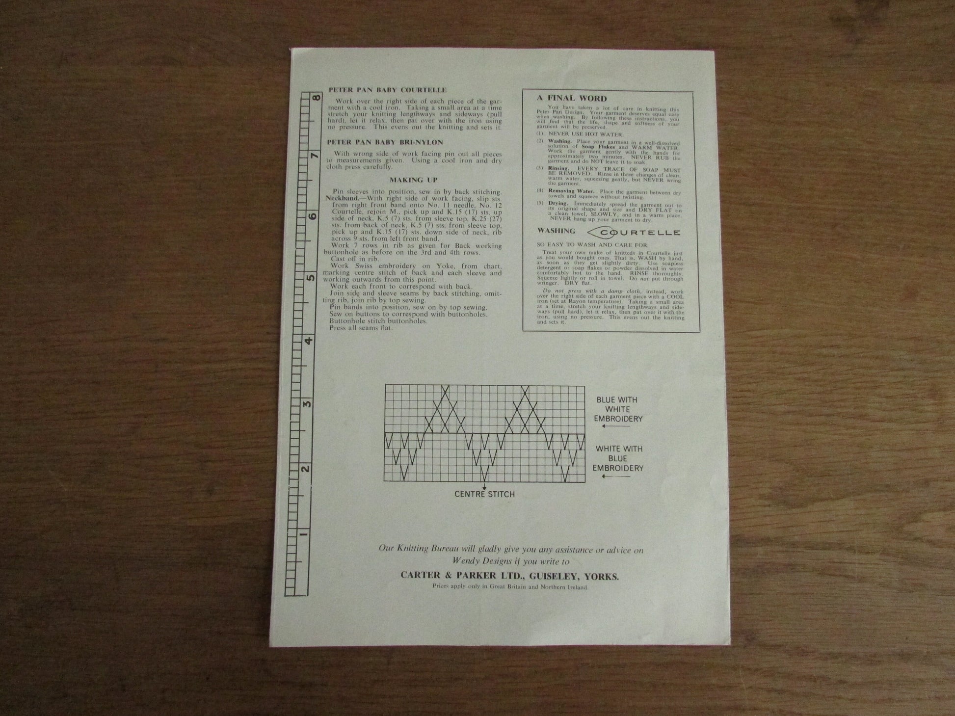 1960s Wendy Design Peter Pan P73 knitting pattern for infant's cardigan