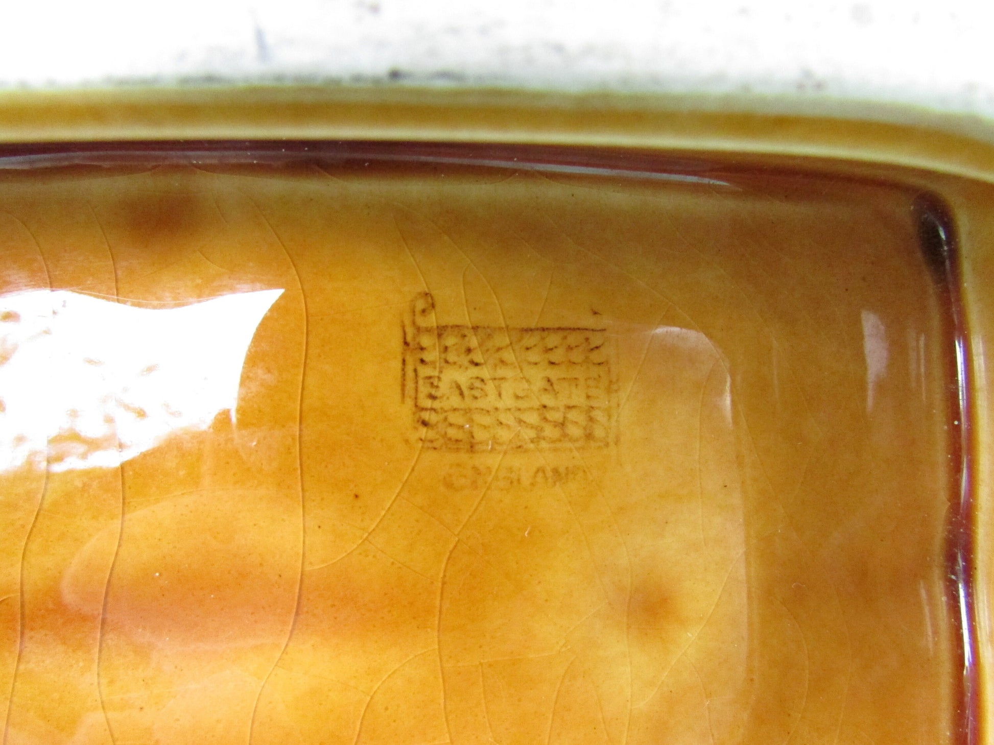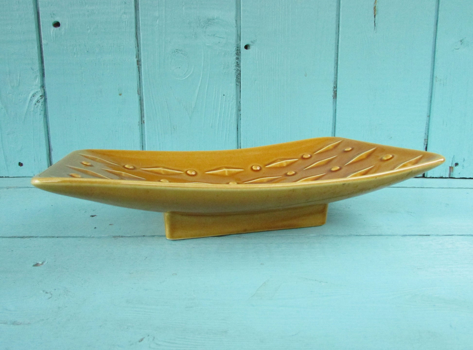 1960s Withernsea Eastgate Pottery golden honey textured rectangular trinket dish