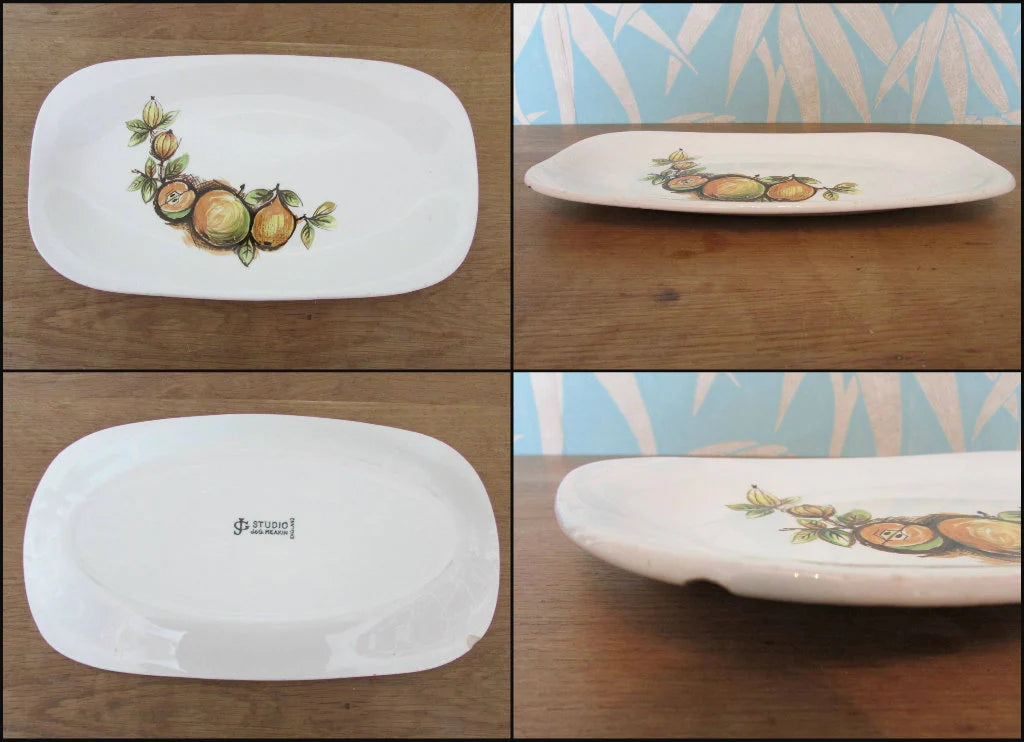 Step back in time with this charming 1964 J&G Meakin Studio "Eden" coffee set – a delightful slice of vintage tableware history! This complete six-piece collection includes a generous serving platter, elegant coffee pot, pair of cups, sugar bowl, and creamer jug. Perfect for collectors seeking authentic mid-century pieces or anyone wanting to add retro flair to their kitchen. Each item showcases the distinctive design aesthetic of the era, making this set a conversation starter whether you're displaying it proudly or actually brewing up a cuppa in style.