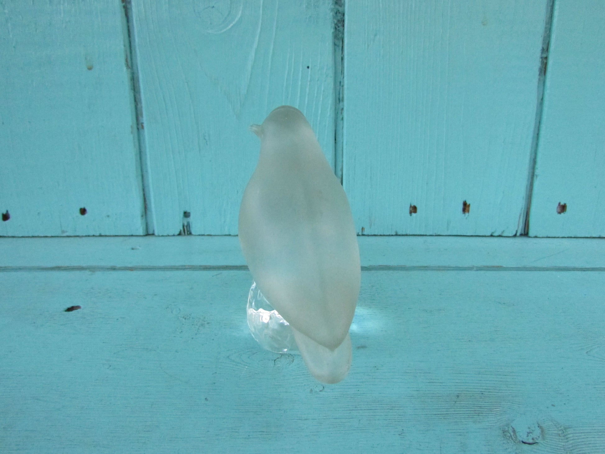 1970/80s Swedish frosted glass Love Birds ornament by Reijmyre Kristall