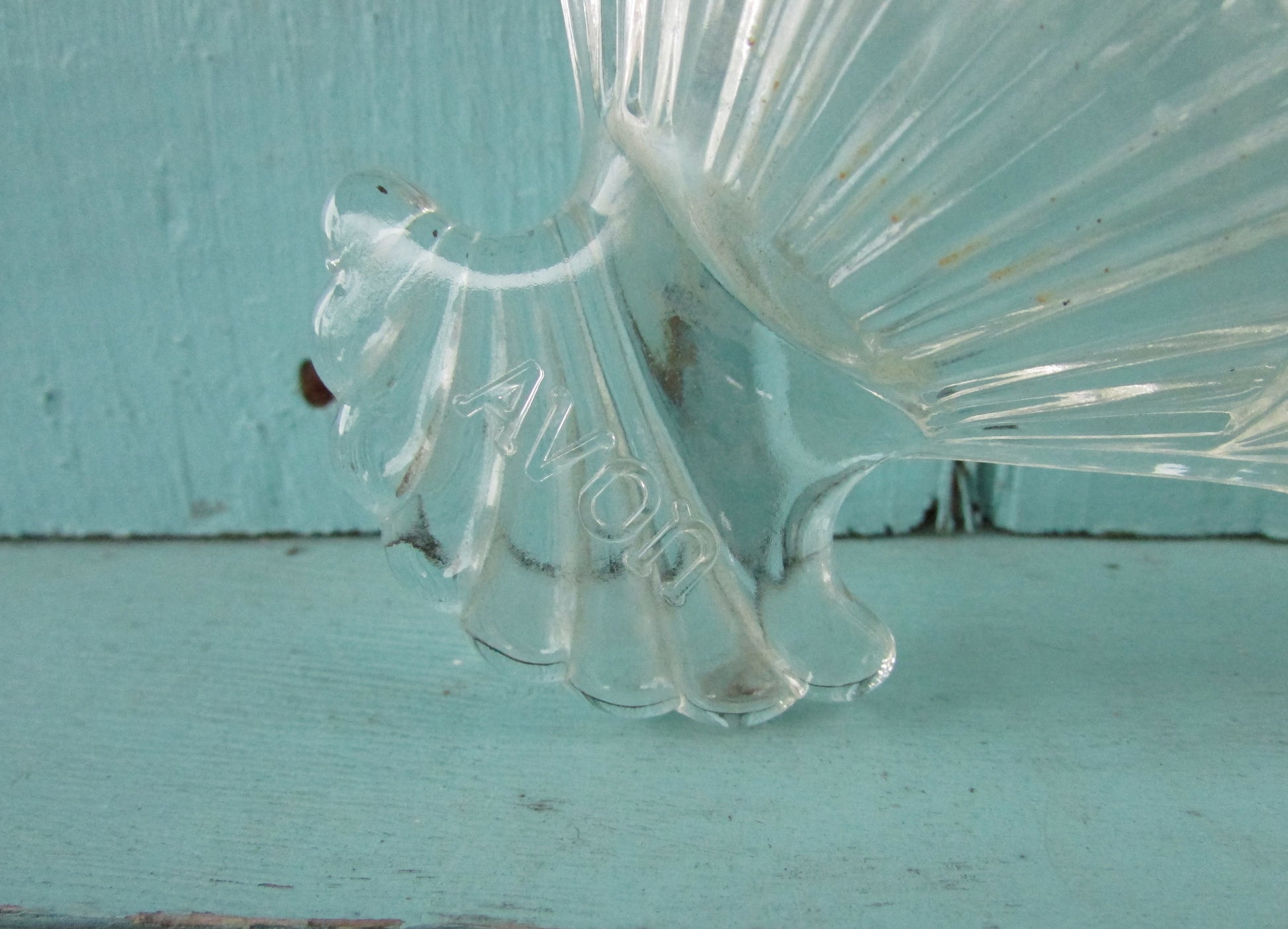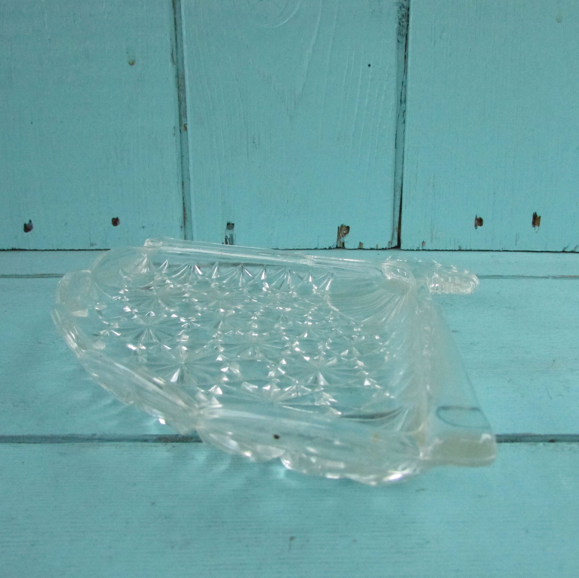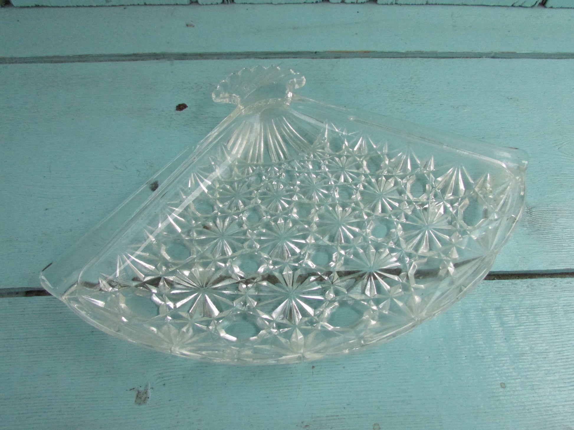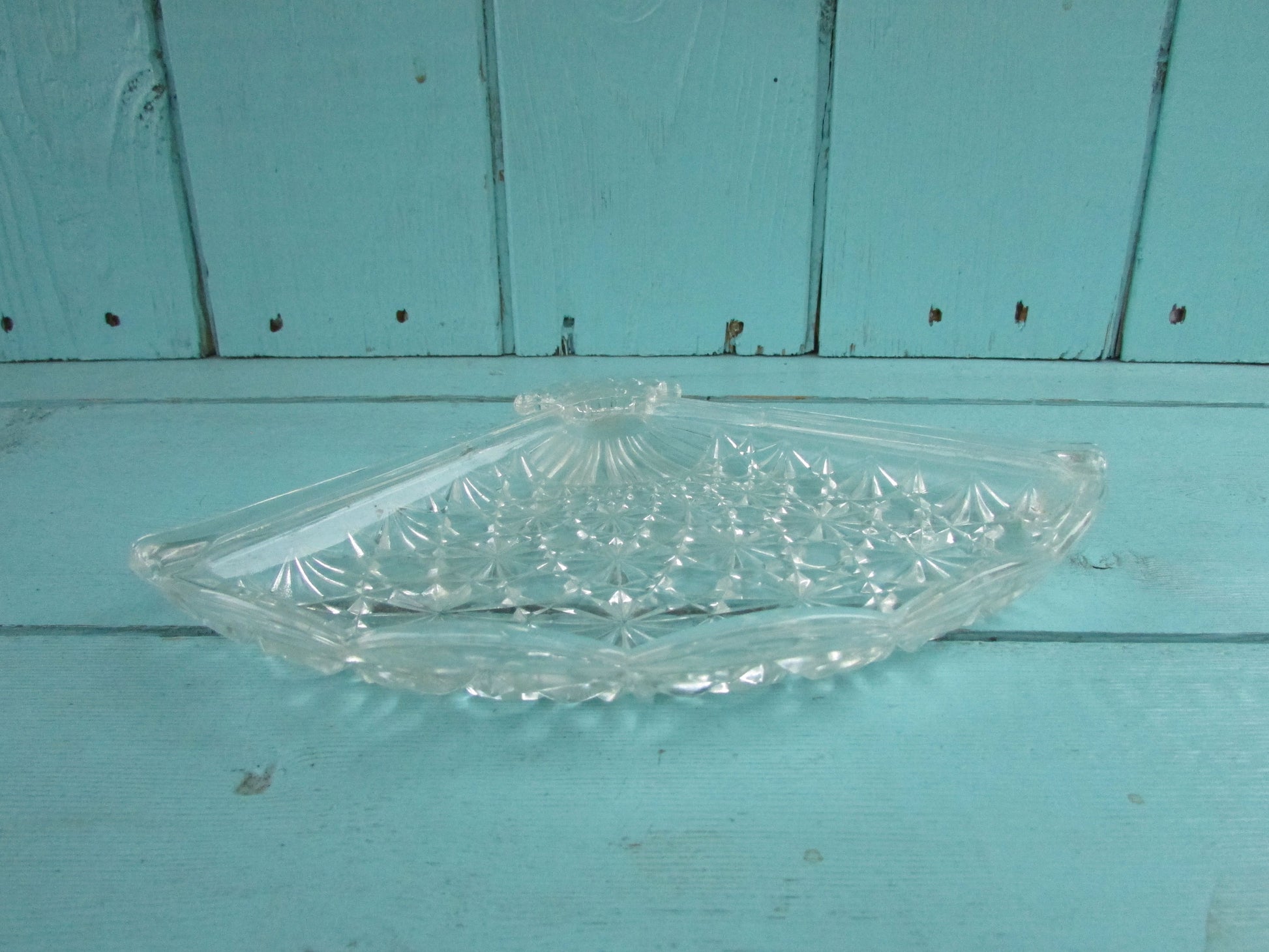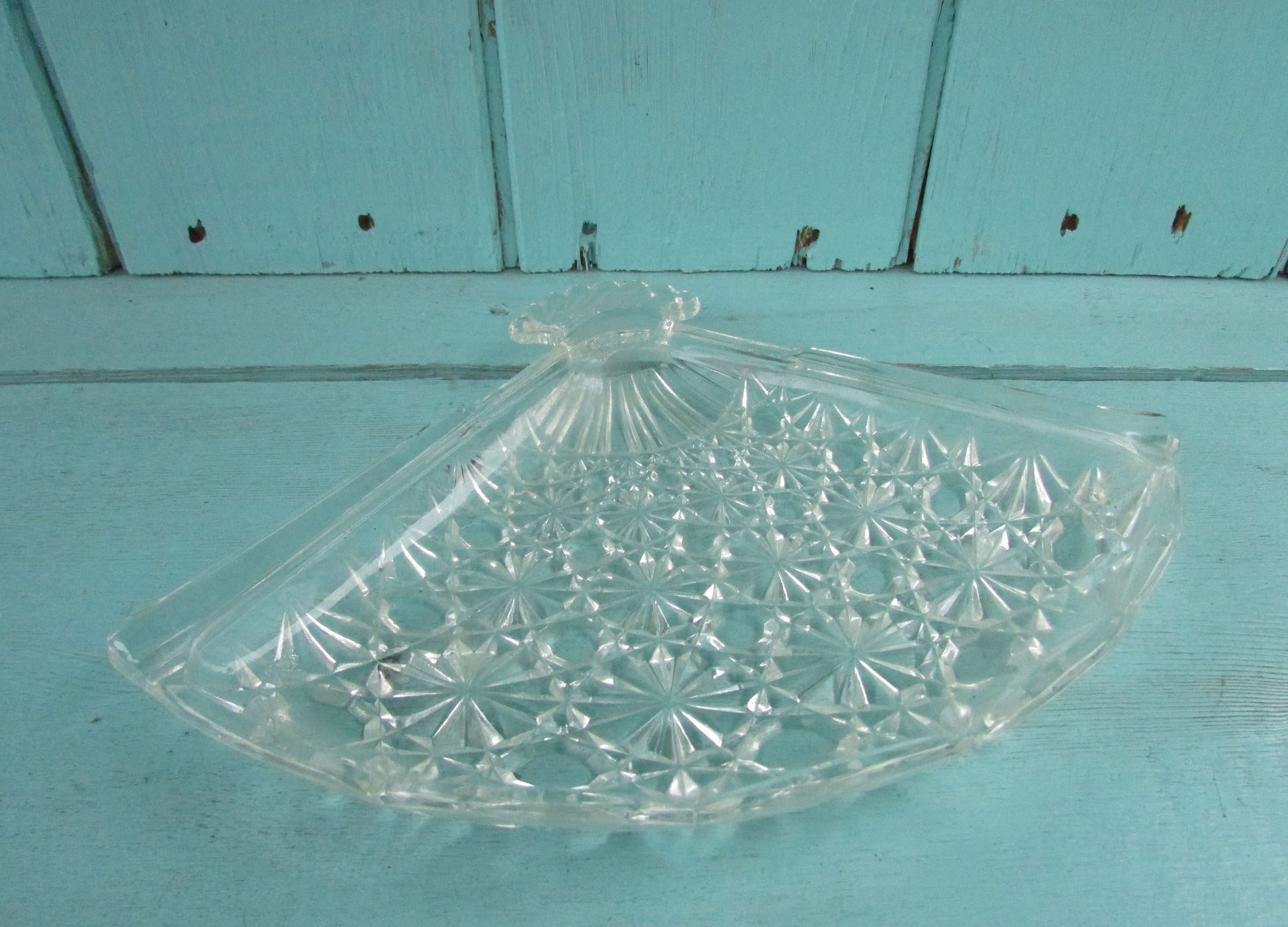 1970s Avon pressed glass triangular fan-shaped candy/trinket dish