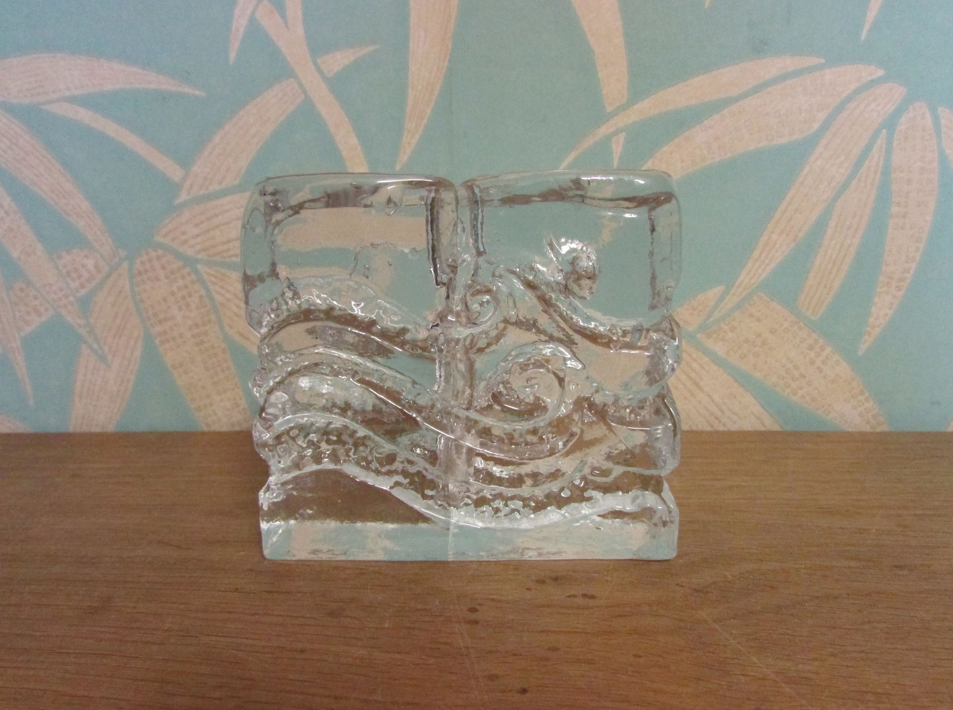 This 1970s Ingrid 'Solifleur Blockkristall Zweigvase' bud/stem vase, measuring around 9.5cm high, 10.5cm long, and 4cm deep, showcases a striking block crystal design that epitomizes mid-century sophistication. It's a perfect addition for collectors who value exquisite Scandinavian glass artistry.