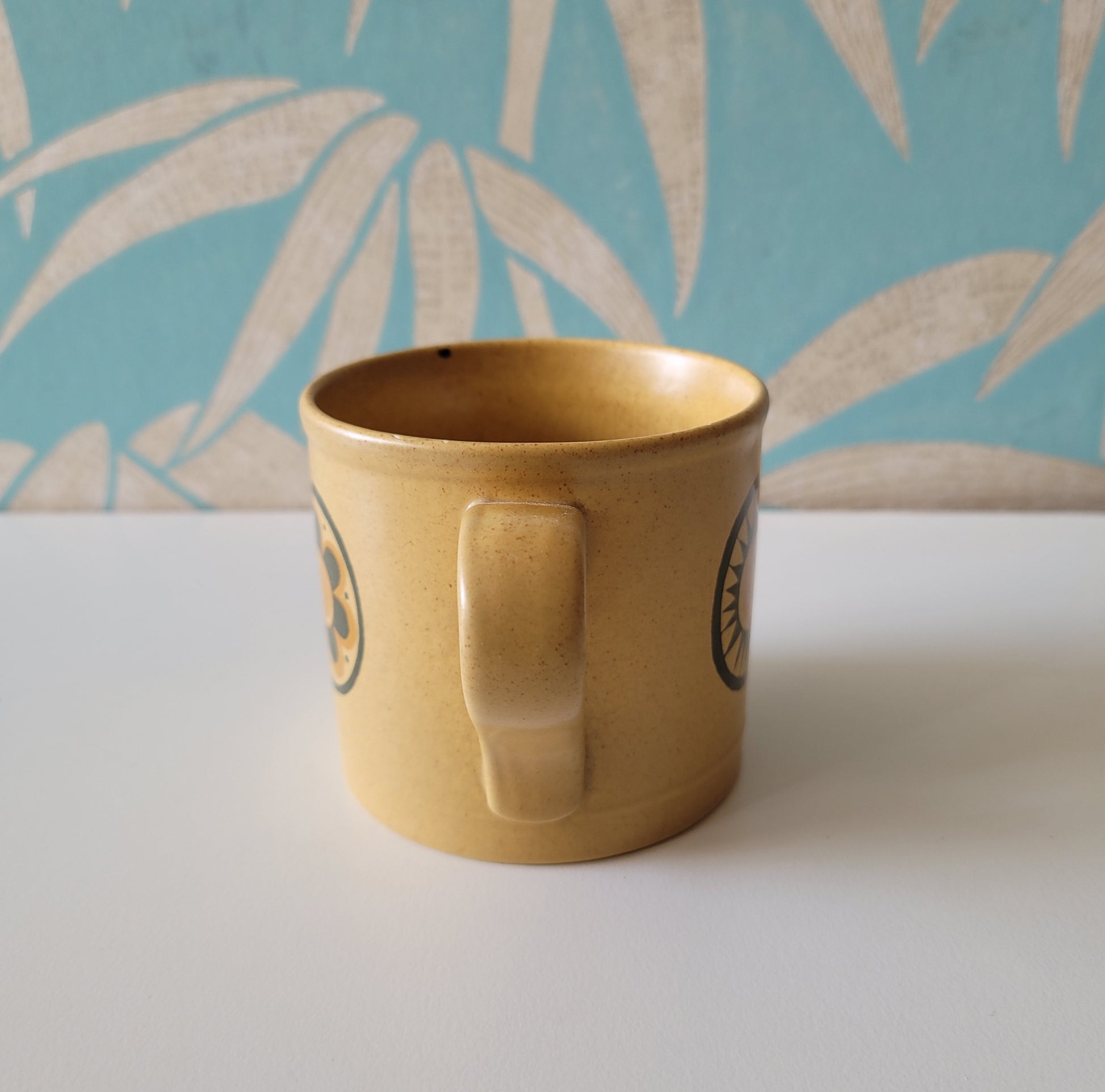 Raise a cup to retro charm with this delightful duo from the golden age of British pottery! This charming pair features a Kilncraft Staffordshire mug showcasing the Bacchus design, standing at a neat 7cm, paired with a Sandler England striped companion at 6.5cm. Perfect for collectors who appreciate authentic vintage tableware or anyone seeking quirky, characterful vessels for their morning brew. Each piece carries the hallmark of 1970s craftsmanship, bringing warmth and whimsy to your kitchen.