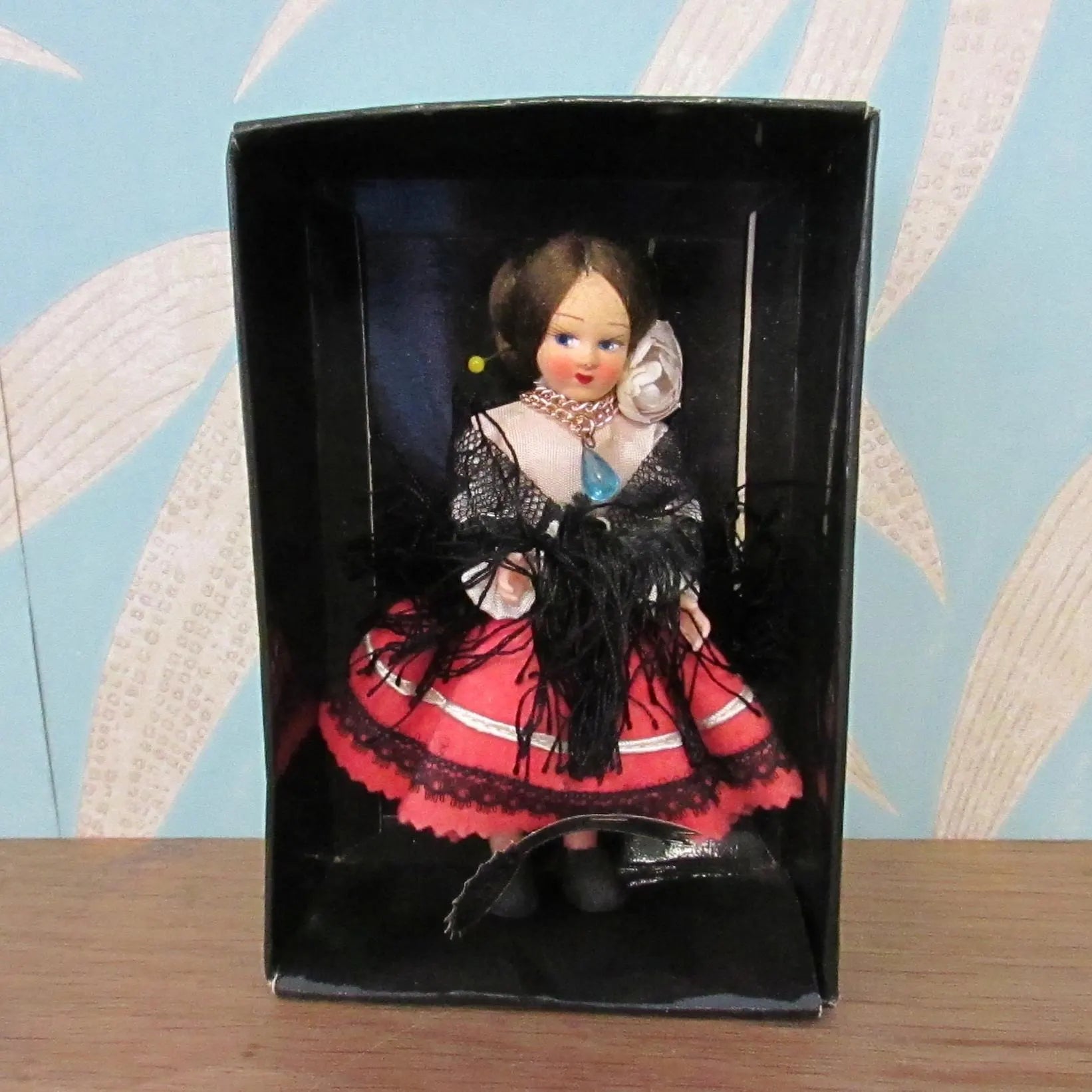This charming 1970s Venezia souvenir doll brings a splash of Italian magic to any collection! Standing at approximately 13cm tall, this delightful folk figure features traditional craftsmanship paired with a stunning Murano glass pendant that catches the light beautifully. Perfect for vintage enthusiasts and lovers of Venetian treasures, it's a nostalgic nod to classic holiday souvenirs and artisanal glasswork. A quirky conversation starter that celebrates the golden age of travel memorabilia.