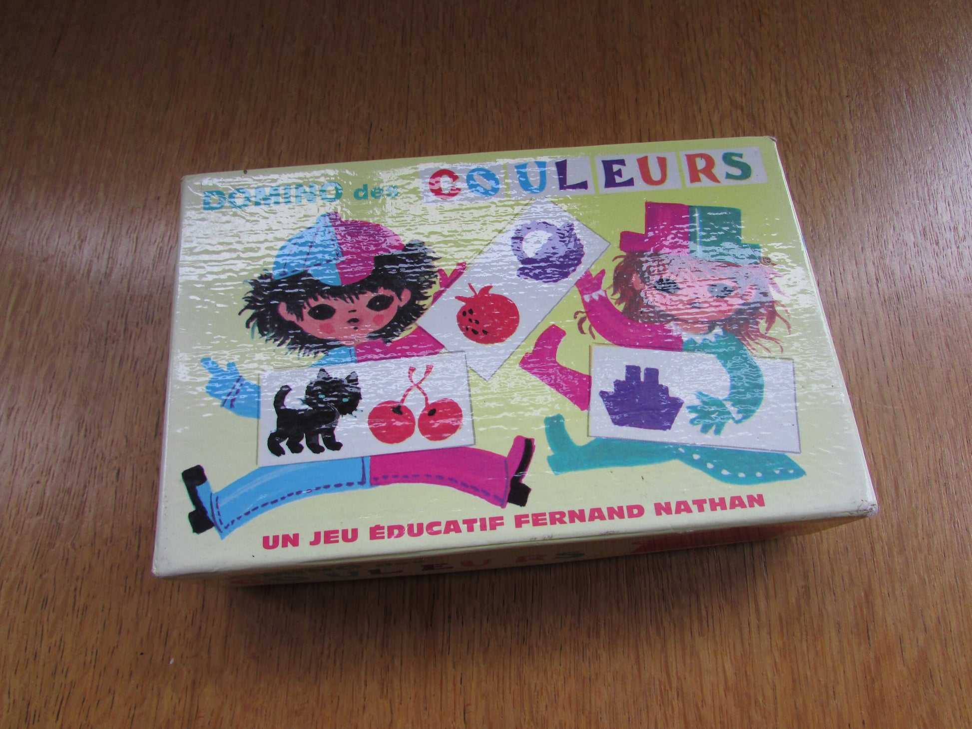 Step back in time with this charming 1971 Domino Des Couleurs, a delightful French children's picture matching game that sparks joy and imagination. This vintage gem features colourful illustrations perfect for little learners discovering patterns and colours. The compact box (15.5cm x 10cm x 3.5cm) makes it ideal for travel or cosy game nights. A wonderful addition to any collector's shelf or a nostalgic gift for those who remember the magic of classic playtime!