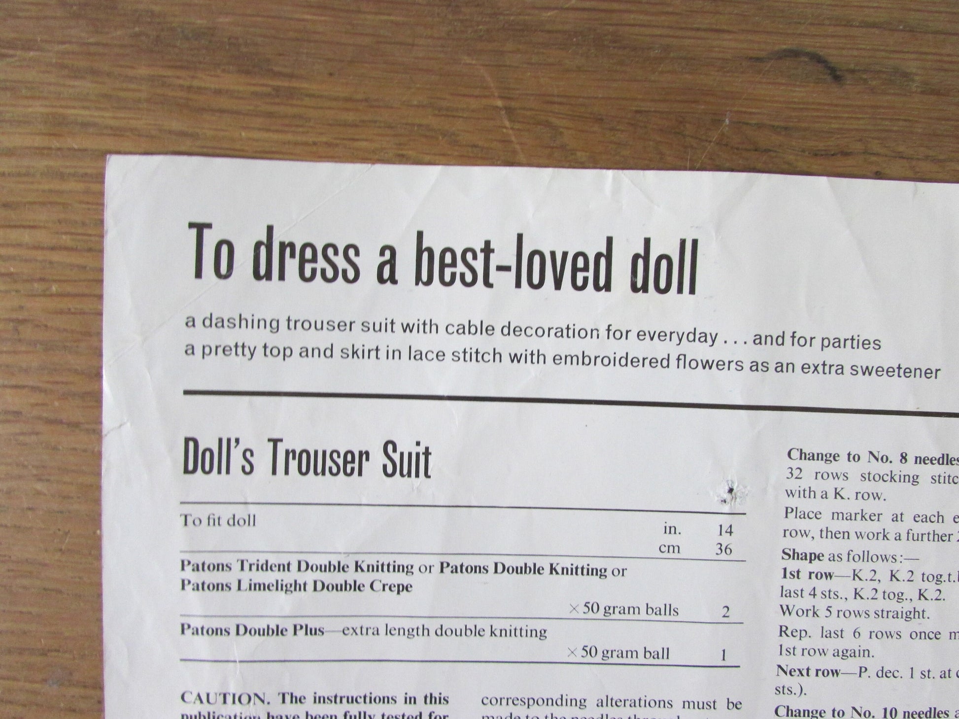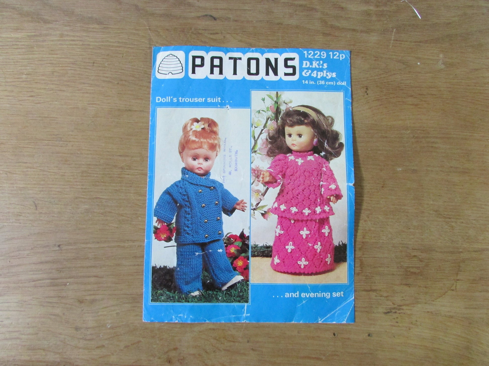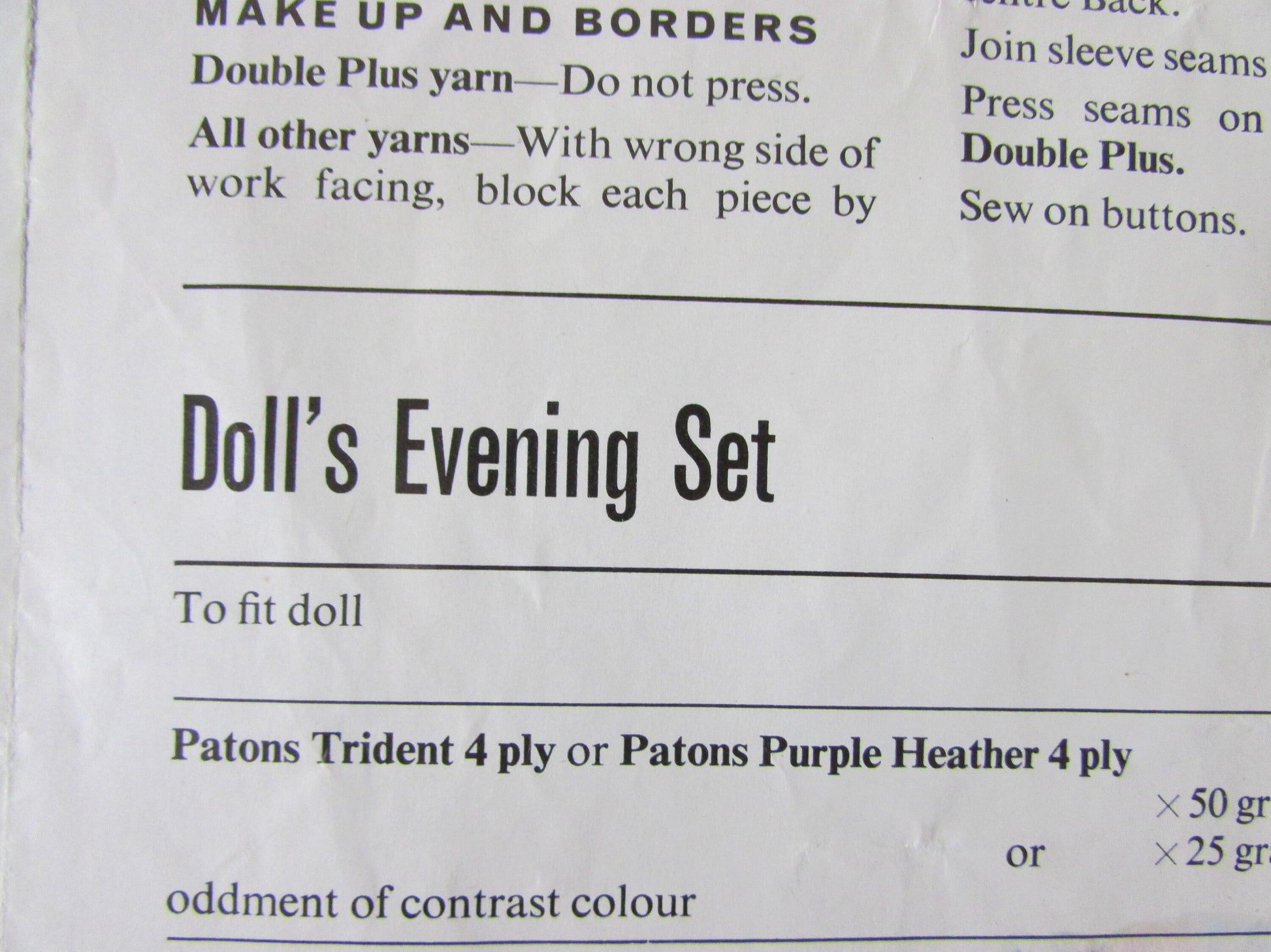 1975 Patons 1229 knitting pattern for doll's trouser suit, & evening set, to fit 14" doll