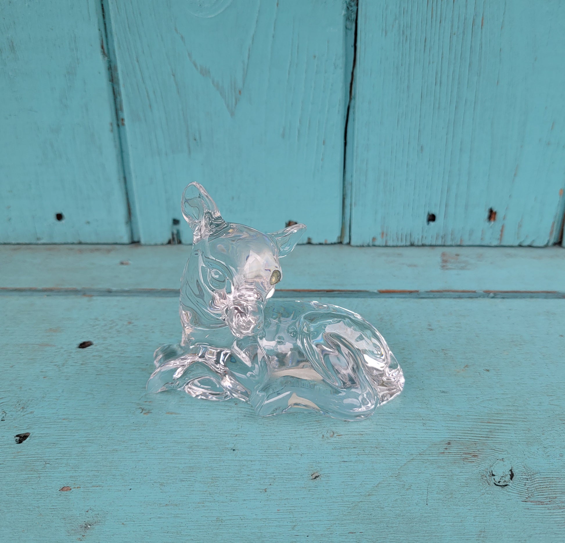 1980s Princess Glass Pets, Germany, lead crystal sitting fawn figurine/paperweight