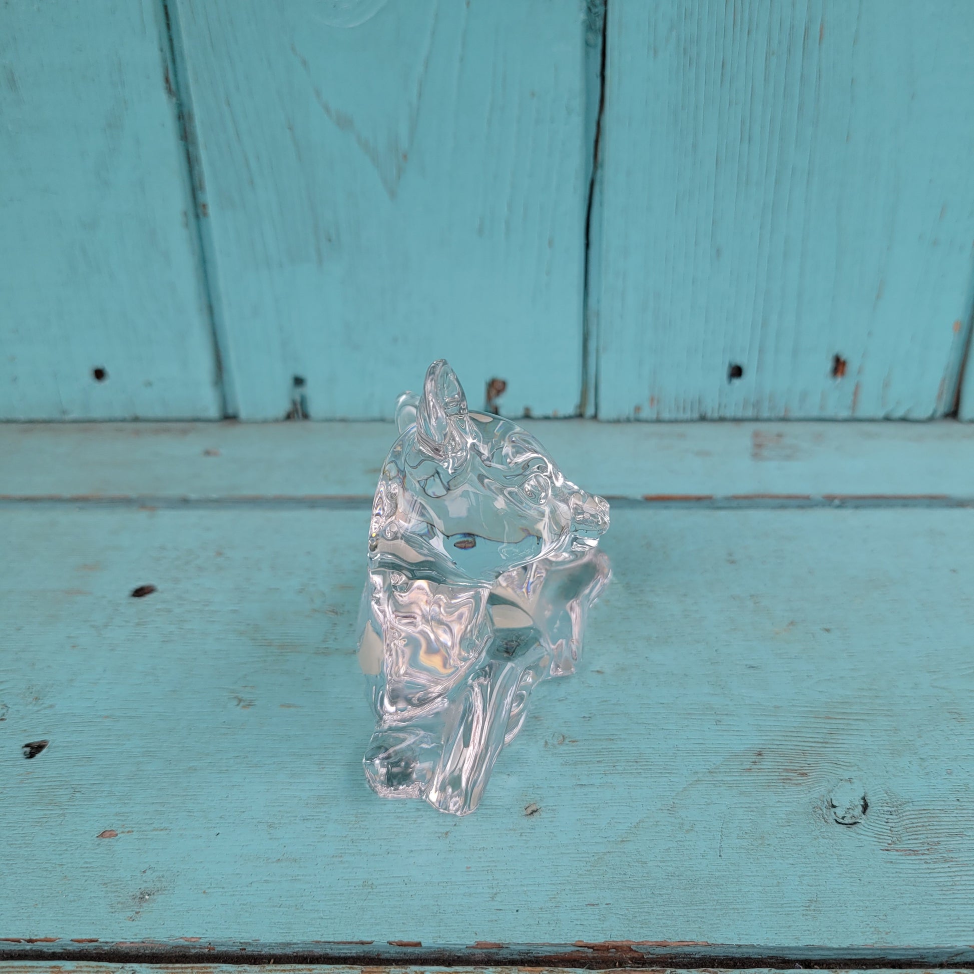 This lovely 1980s German crystal figurine captures a delicate fawn in a sitting pose, crafted Crafted from 24% lead crystal, this elegant figurine measures about 10 cm long and 8 cm tall. It features the sparkling clarity characteristic of quality lead crystal, making it a distinctive collectible or a unique paperweight that adds sophistication to any space.