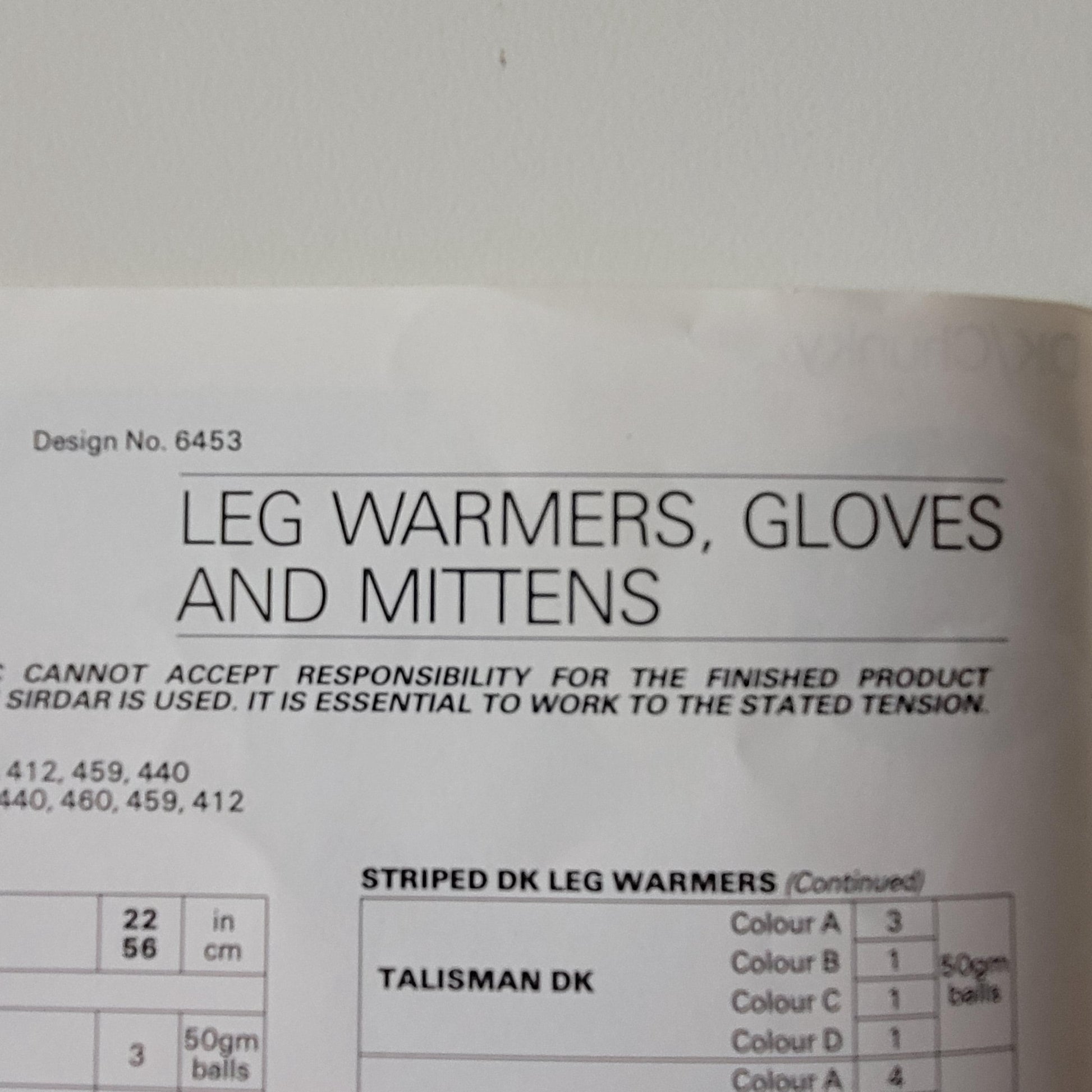 1980s Sirdar 6453 knitting pattern for leg warmers, gloves & mittens