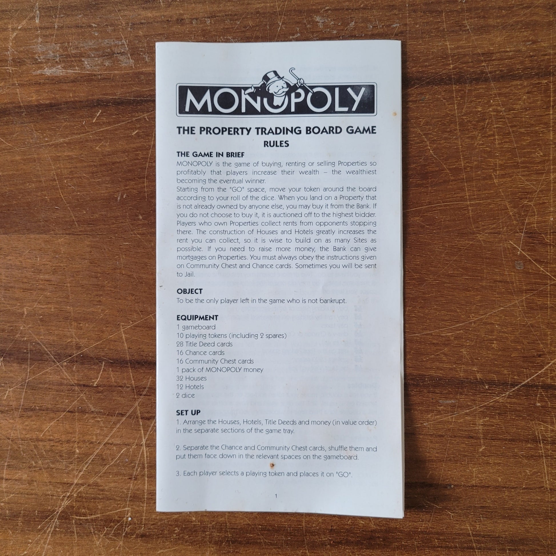 Monopoly is a classic property trading game where players move around the board to buy, rent, and sell properties, aiming to bankrupt opponents and become the last player remaining. Players start with an initial amount of money, receive a salary for passing "Go," and collect rent from opponents who land on their properties. The 1996 edition is a classic, family-friendly version with a finance and strategy theme.