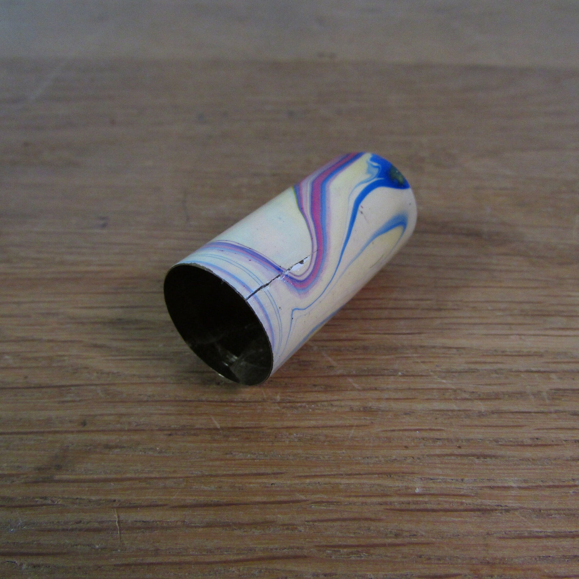 This charming Art Deco etui case brings vintage character to any sewing collection. Standing at a petite 7cm, it features beautiful marbled brass detailing. Inside, discover a wooden needle holder and thread spool, perfectly preserved from a bygone era. Ideal for collectors who cherish imperfect treasures and sewers who appreciate functional vintage style.