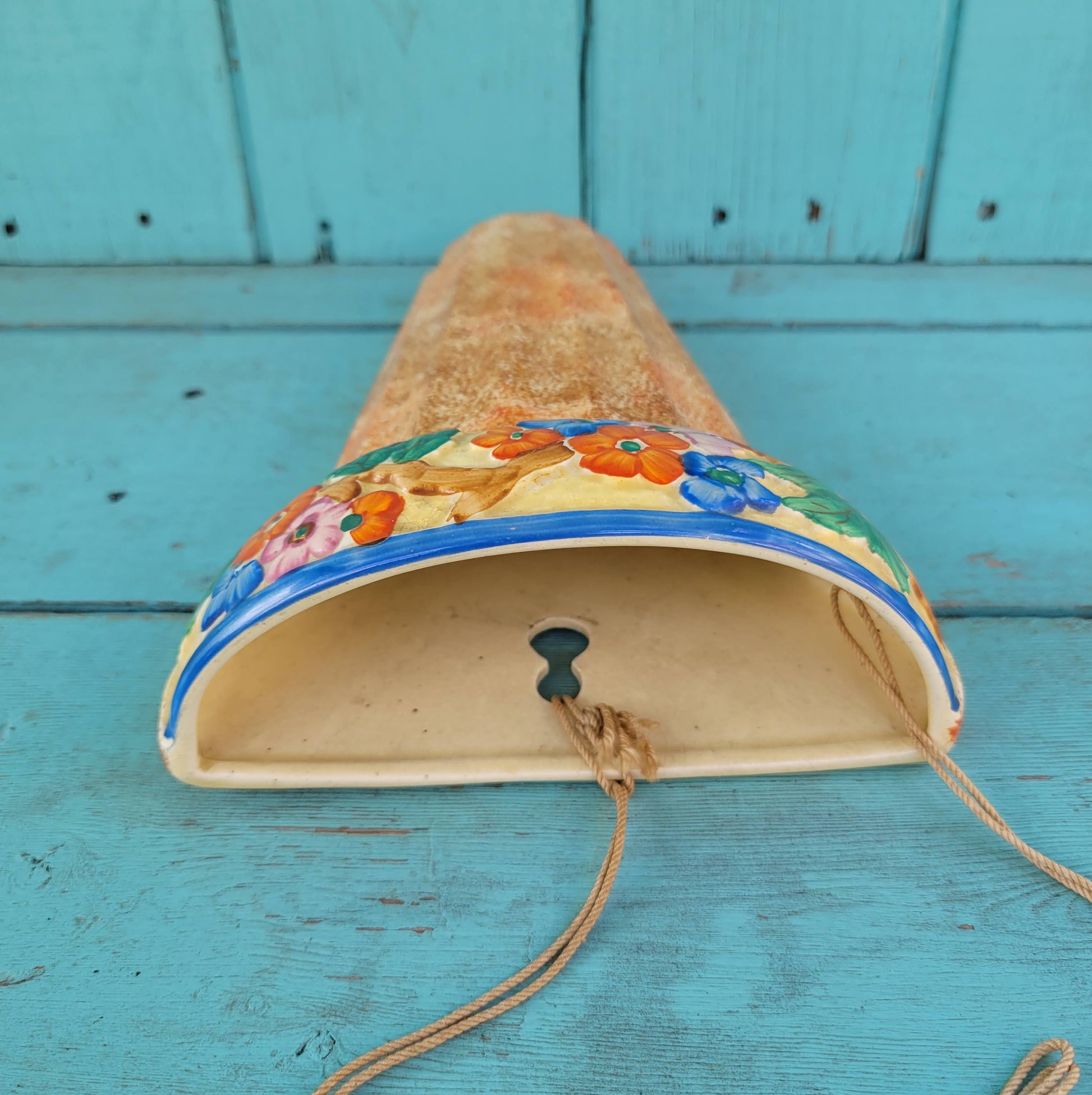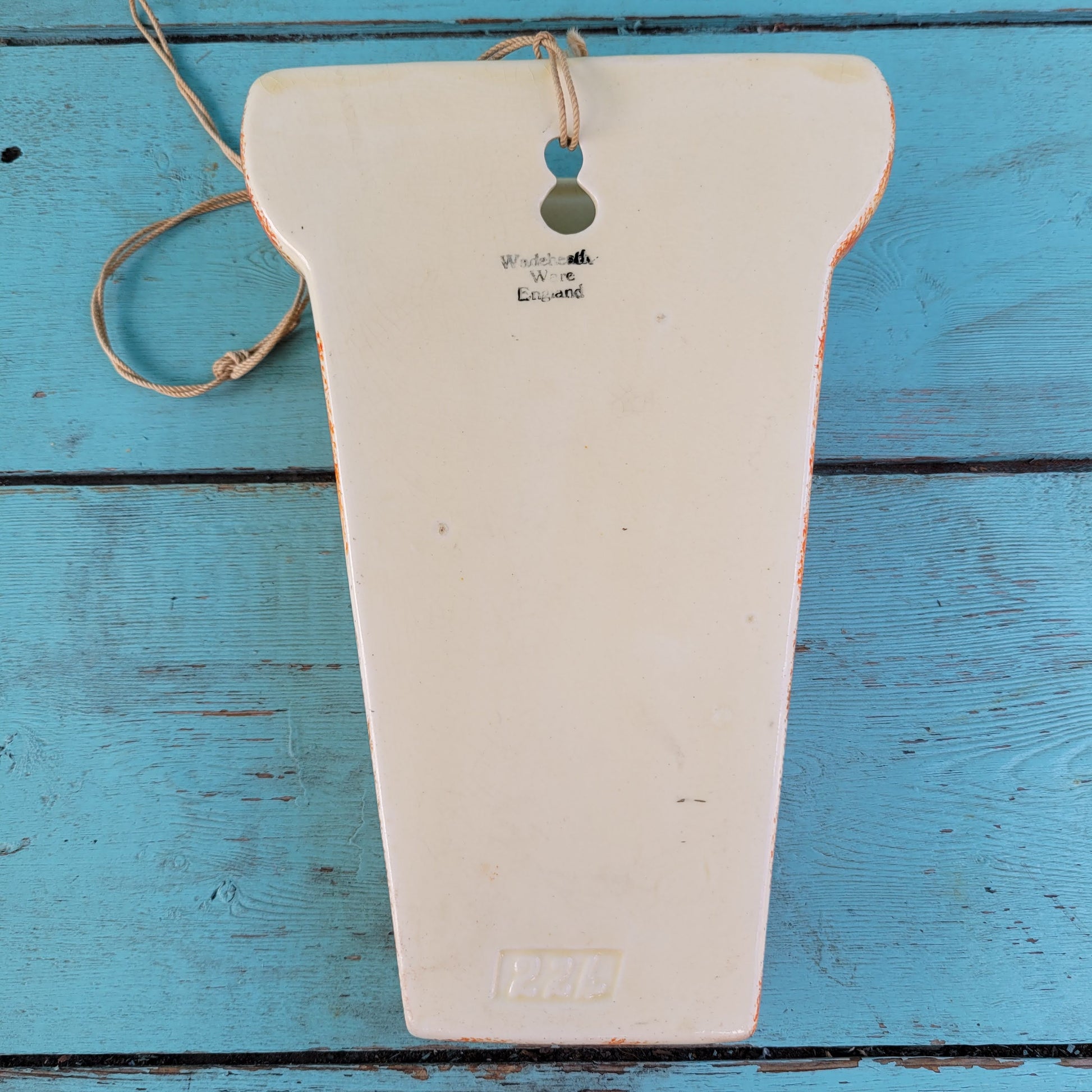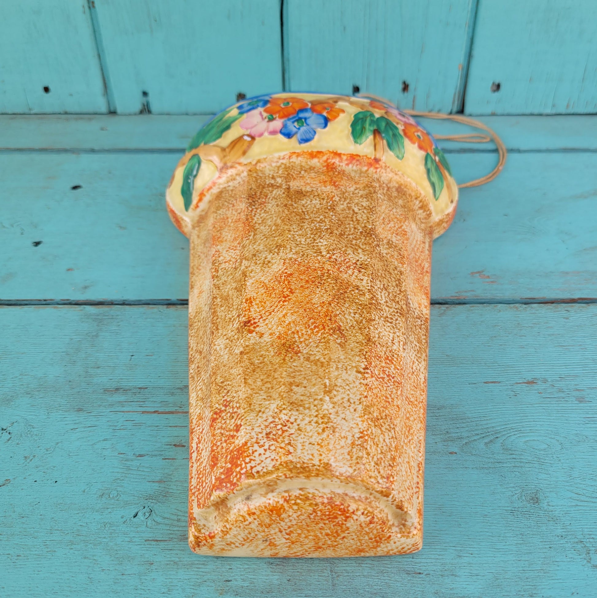 Art Deco Wadeheath Ware orange/rust ceramic wall planter with handpainted floral rim, stamped 224