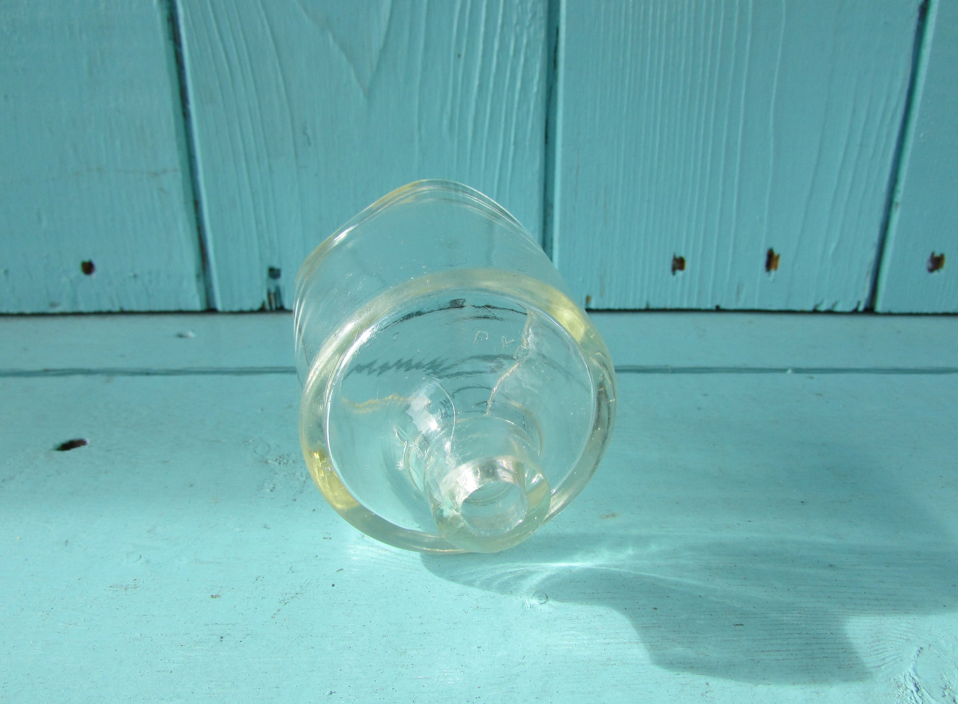 This circa 1950s Pyrex glass pie funnel, measuring 7cm high with a 5.5cm diameter, combines vintage charm with practical use. Crafted from durable glass, it ensures even steam release for perfect pie crusts every time. Add a timeless piece to your baking tools that blends style and function effortlessly.