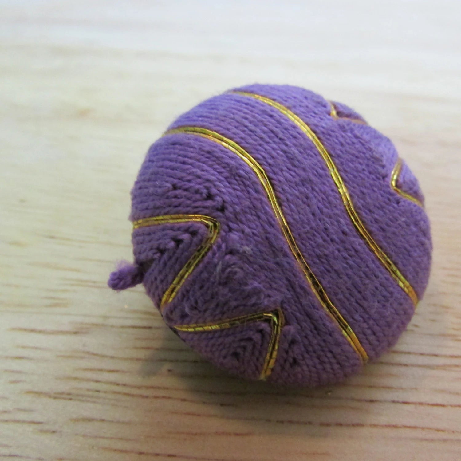 circa. 1980s large purple & gold thread covered button clip-on earrings