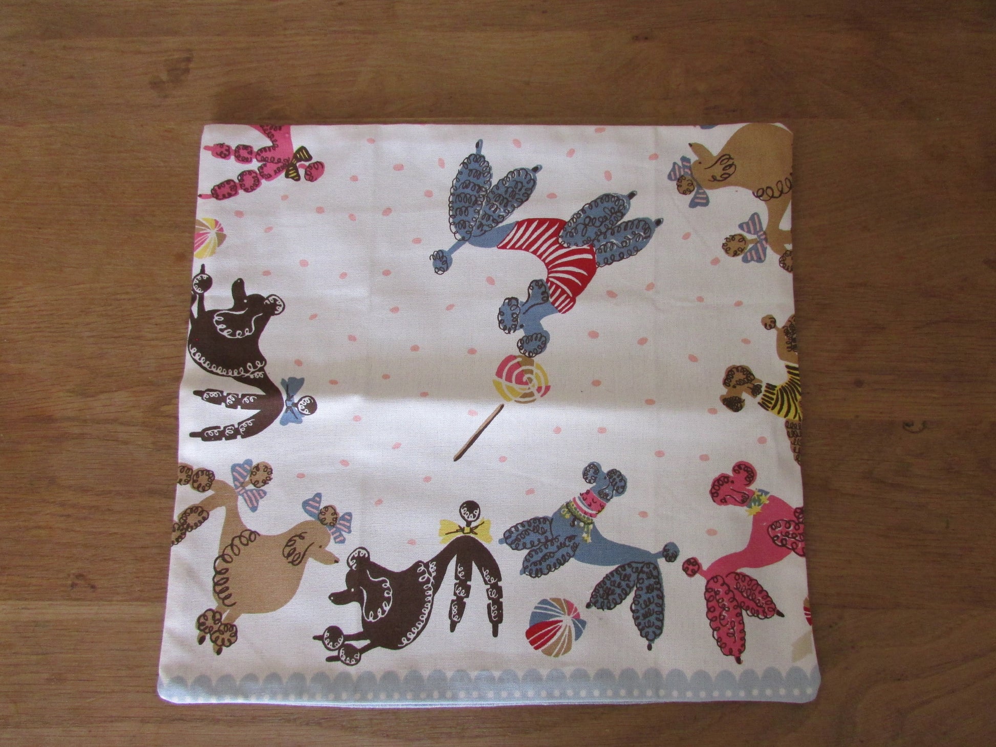 Home-made 1950s-style poodles cushion cover with contrast reverse