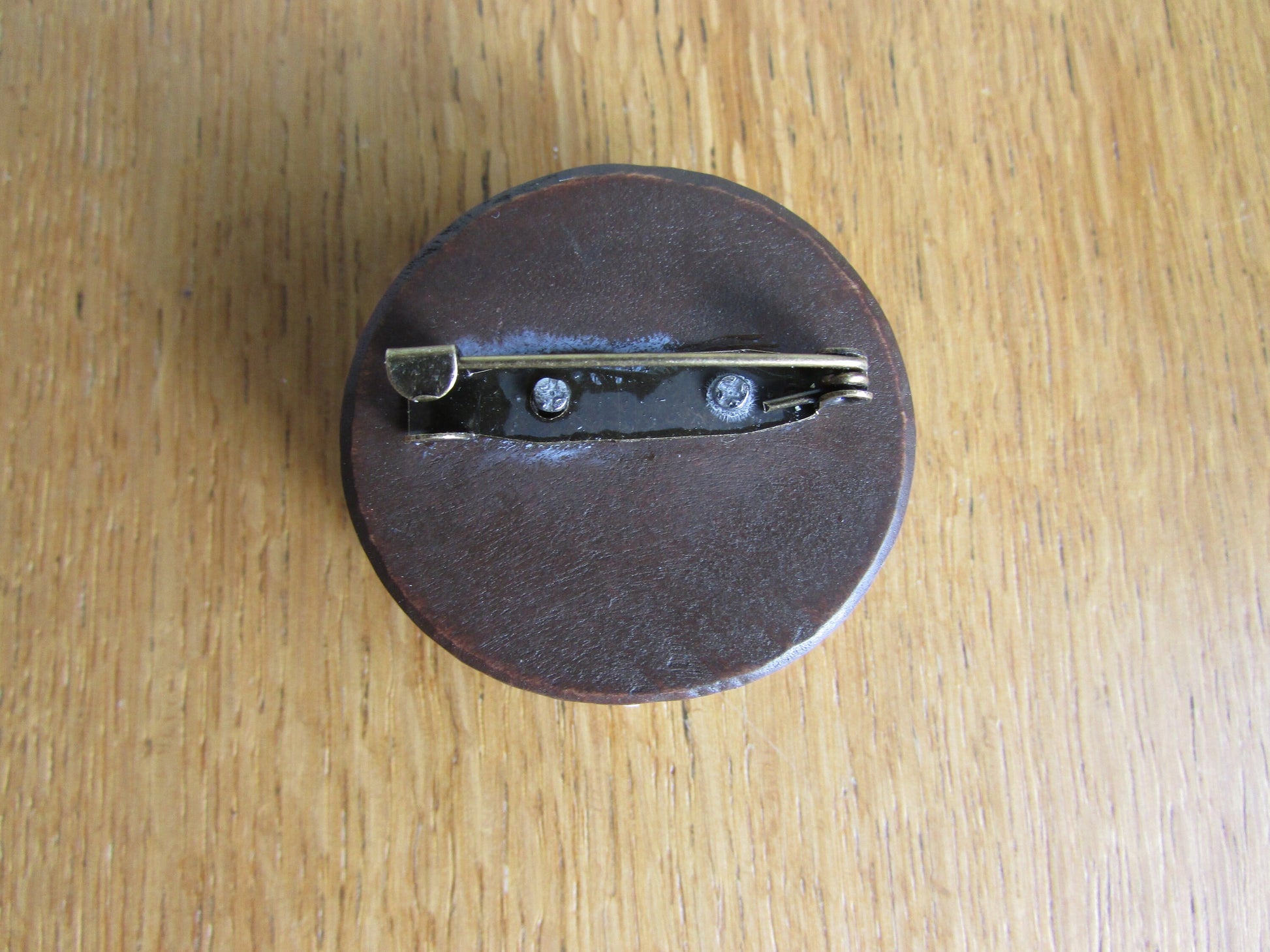 Home-made brooch using vintage plastic ships wheel and vintage wooden round bead