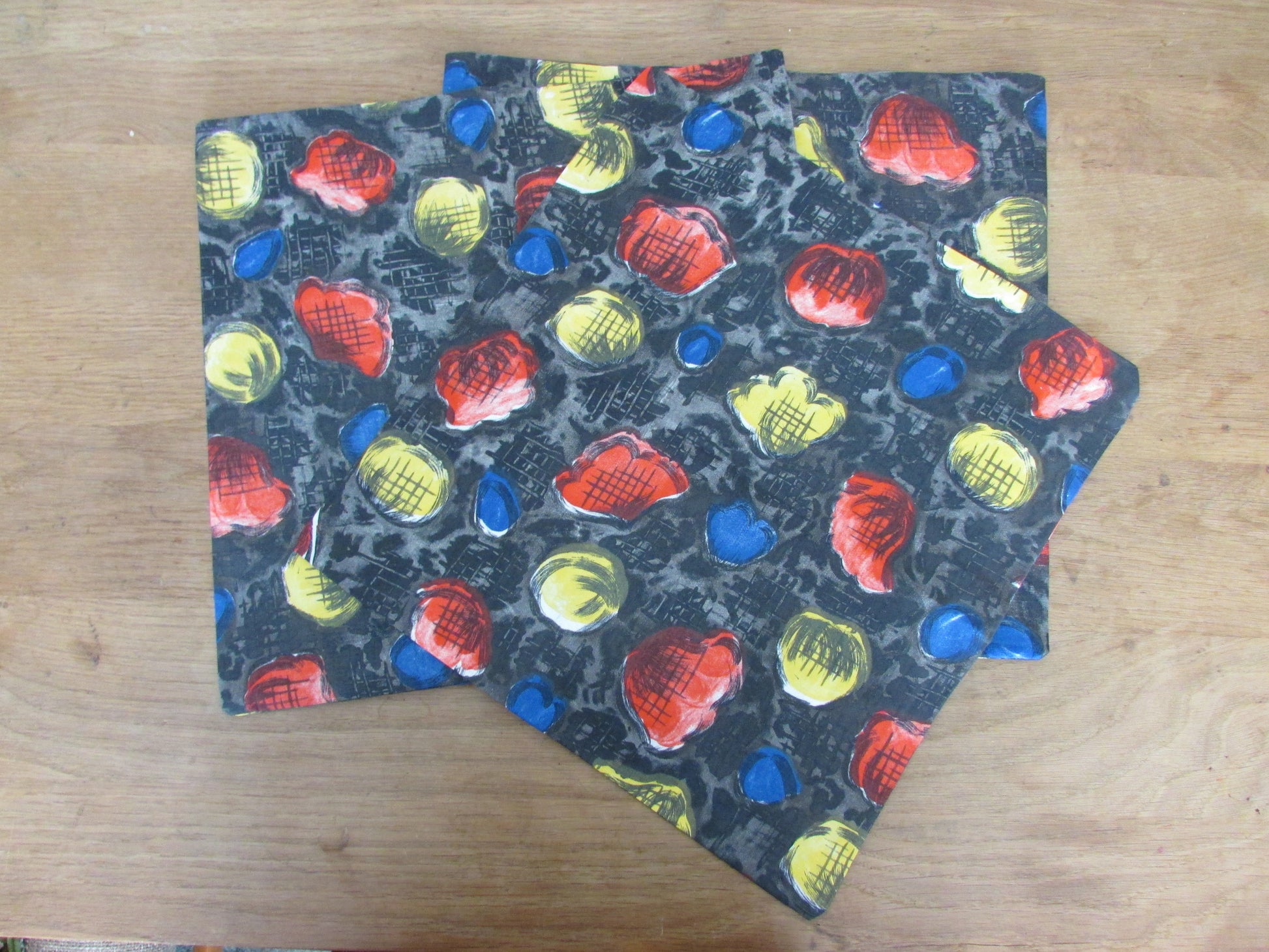 Home-made mid-century colourful abstract petal pattern cushion cover with contrast metallic OR same pattern reverse