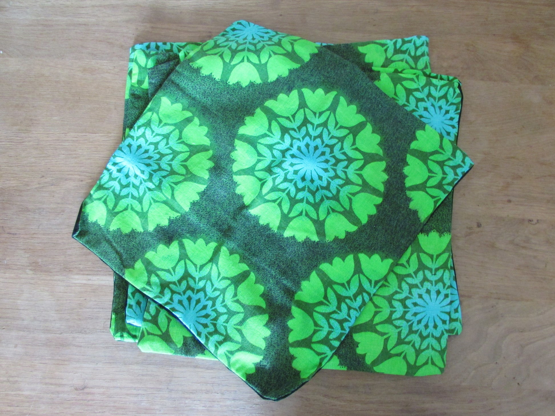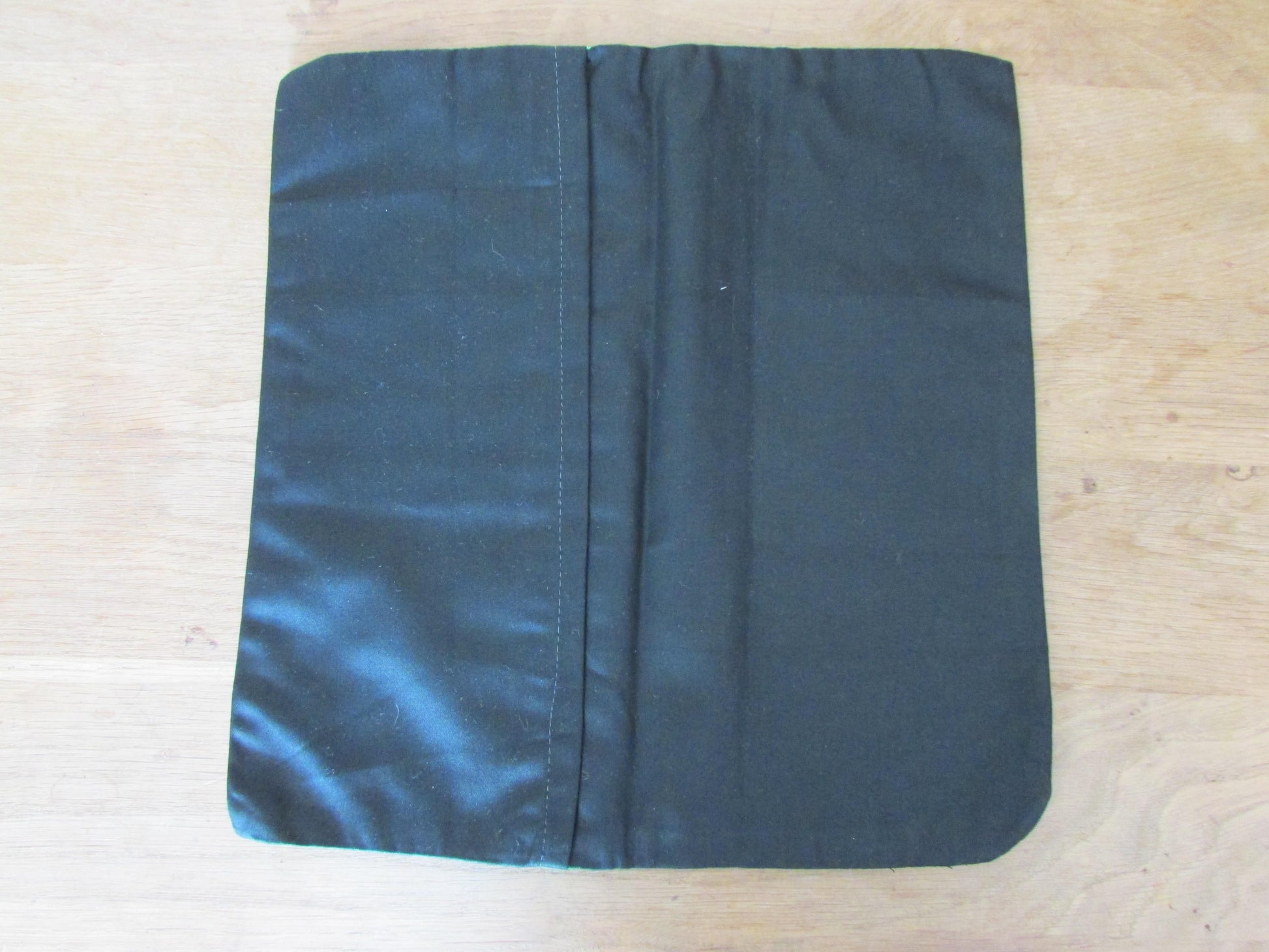 Home-made vintage green tulips circles cushion cover with contrast black reverse