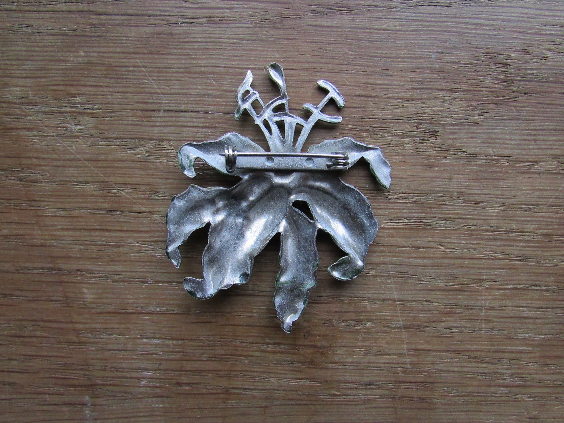 Large vintage Art Nouveau-style enamelled metal lily brooch