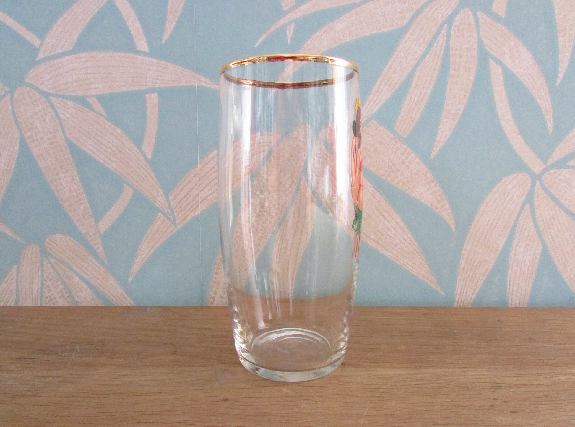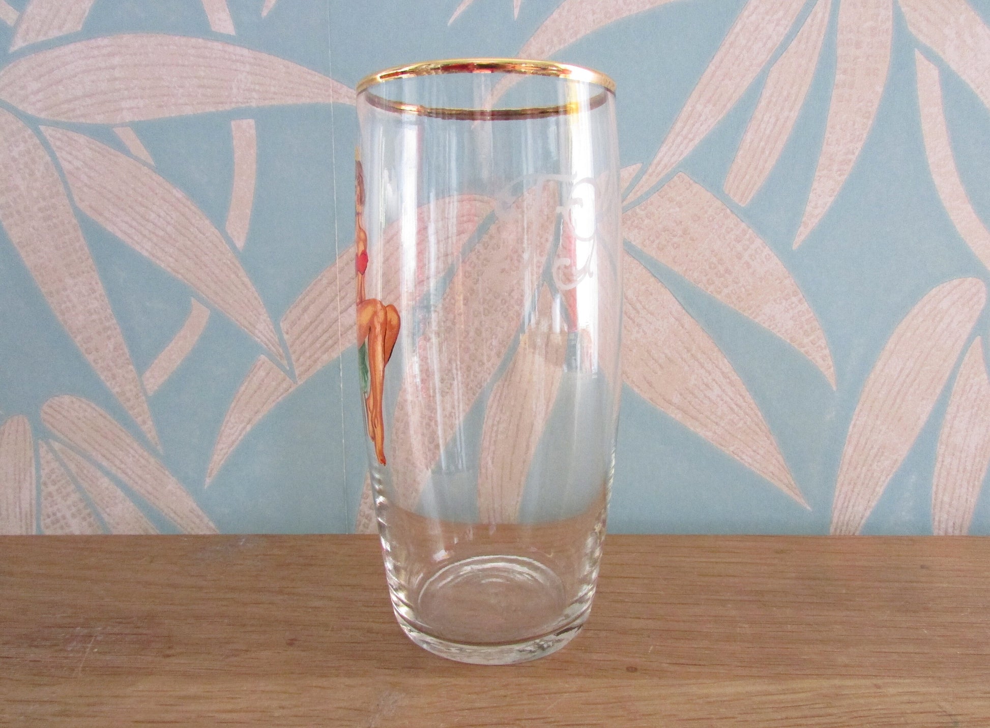 Mid-century gentleman's risqué pin-up girl pint glass, reverse decal