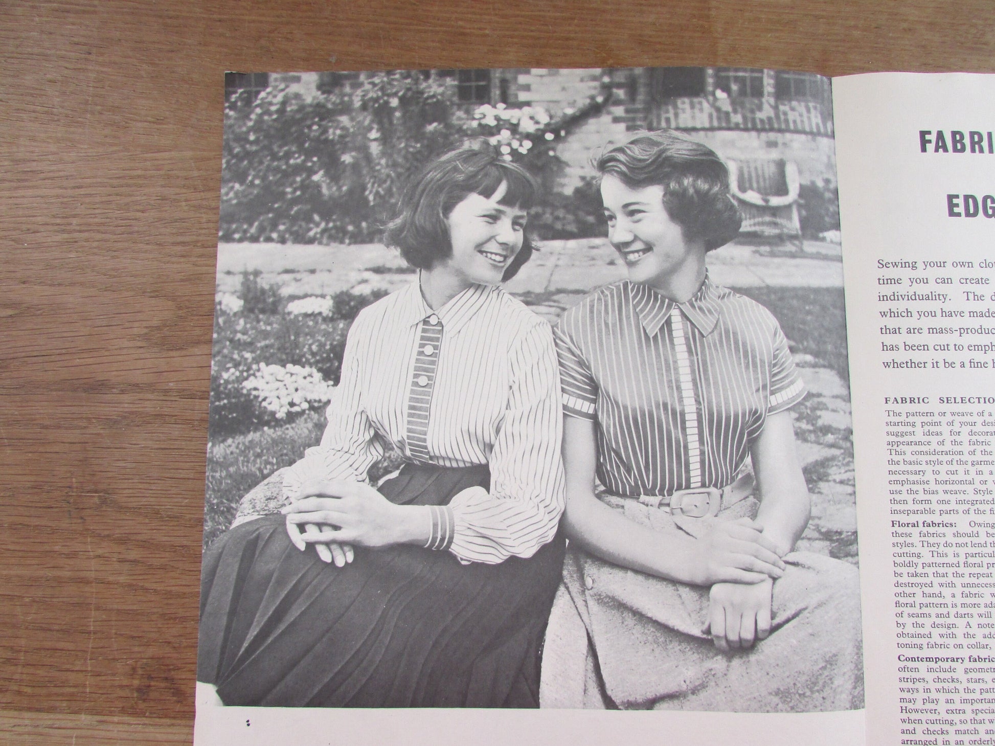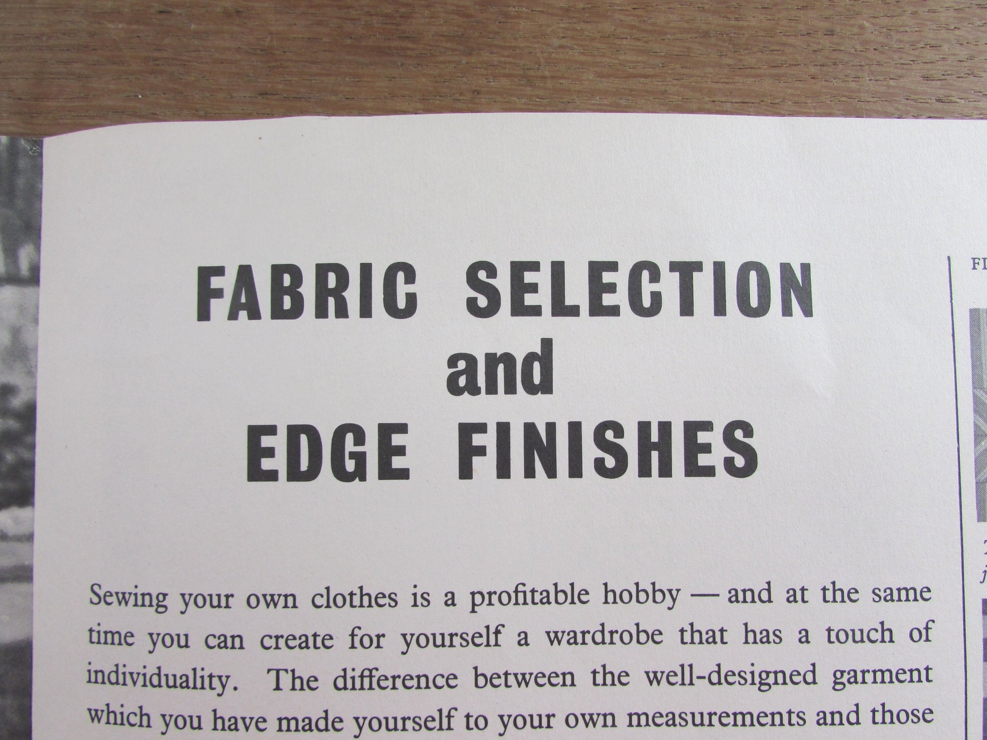 Mid-century NDS Bulletin 27A 'And So To Sew' fabric selection; edge finishes