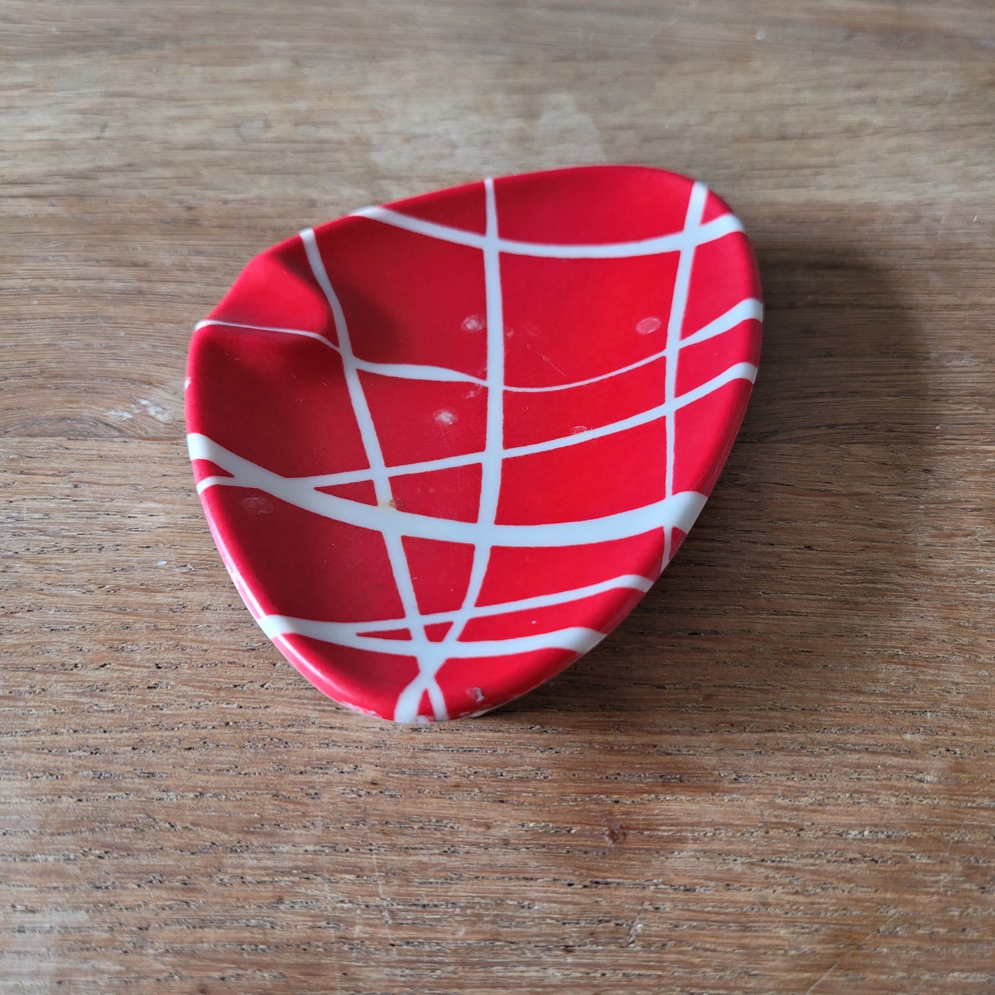Mid-century Ornamin Permaware red & white abstract pattern ashtray/pin dish