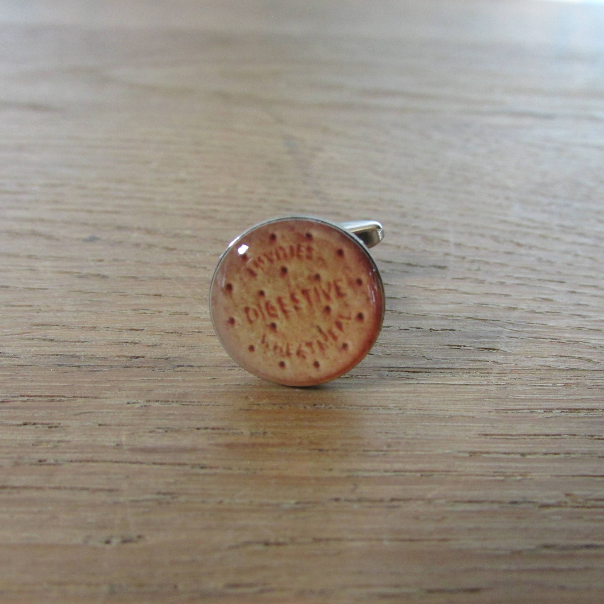These quirky silver-tone cufflinks bring a bite of British humour to your formal wear. Shaped like everyone's favourite digestive biscuit, they're the perfect conversation starter for anyone who appreciates quirky accessories. Measuring approximately 1.5cm in diameter and presented in a smart gift box, they're ideal for biscuit lovers, comedy enthusiasts, or anyone who enjoys a playful twist on classic menswear.